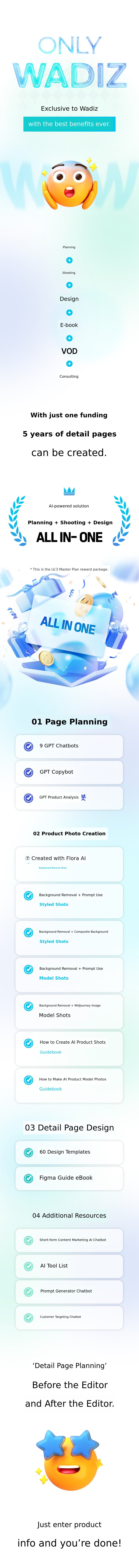 Additionally, by utilizing the e-book containing image generation AI know-how and design templates,we have structured the rewards so that you can complete the detail page up to the final stage. We have done this.