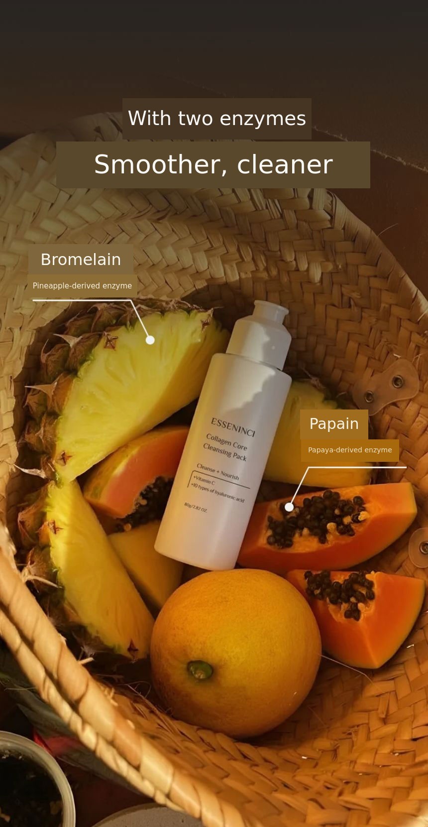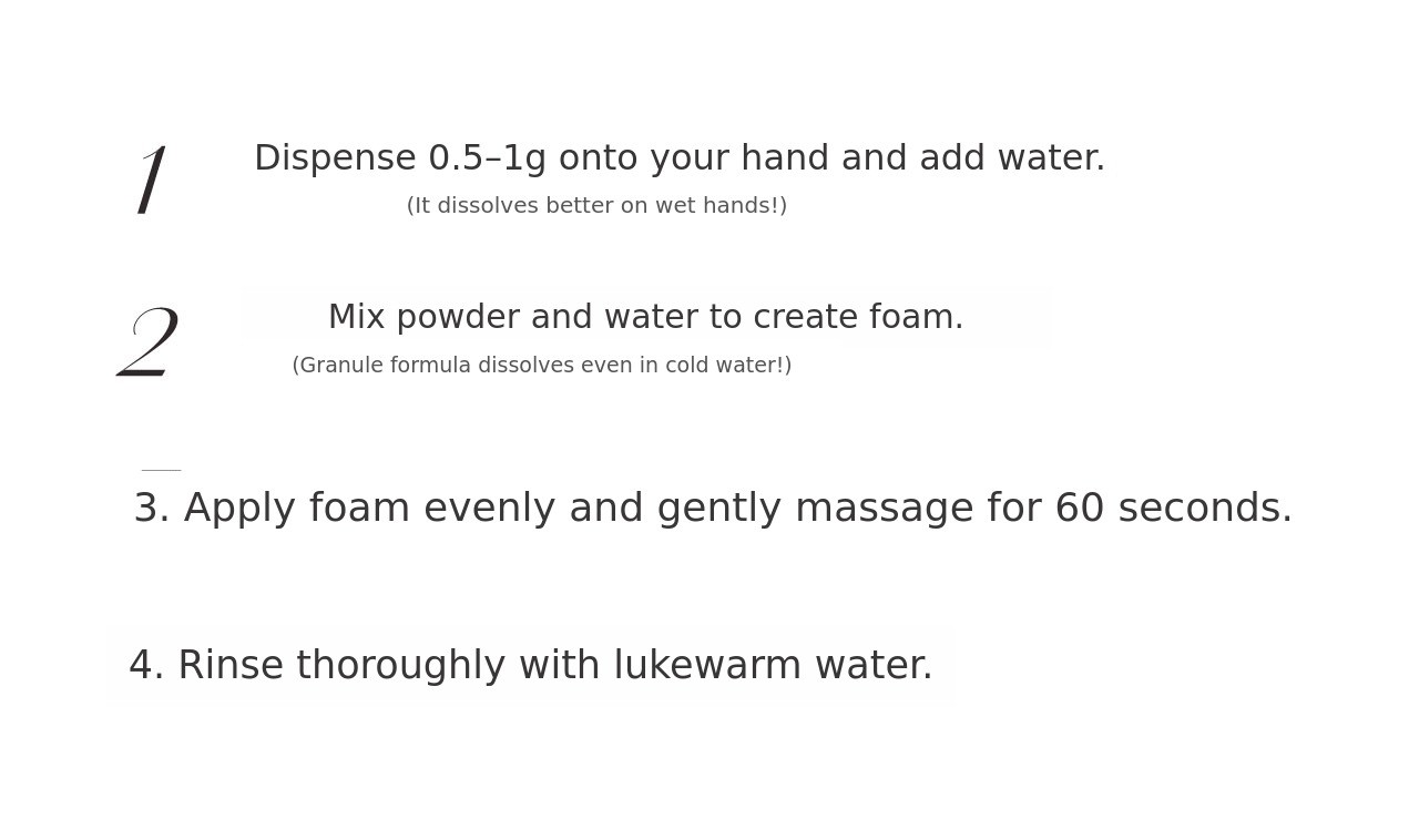 A. Enzymes are actually activated only when they meet water. However, most cleansing foams on the market already contain purified water, so by the time consumers use them, the enzymes have often lost their effectiveness. That's why EssenNC is intentionally made in powder form. When you mix it with water right before use, the enzymes are activated at that moment, allowing you to experience the exfoliating effect most effectively.