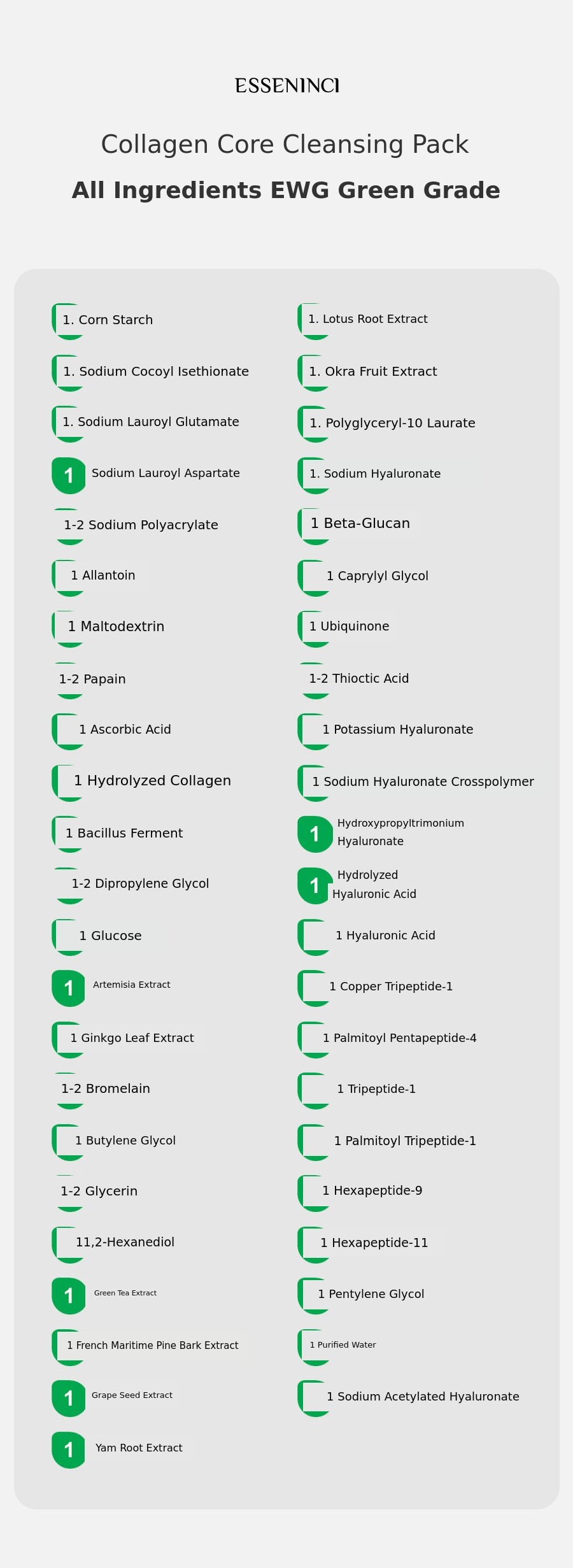 A. Unlike cleansing foam, it does not contain purified water, so the volume may appear a bit smaller. Since the powder is a formula that is mixed with water, it actually lasts much longer. While most cleansing powders are 40~60g, Essenc cleansing pack is a large 80g size, making it a cost-effective product.