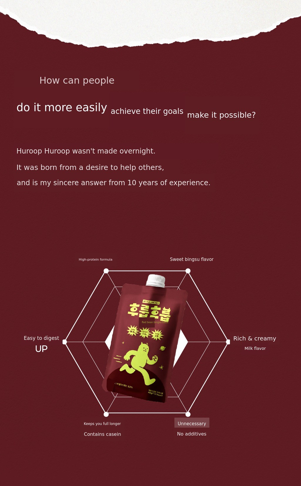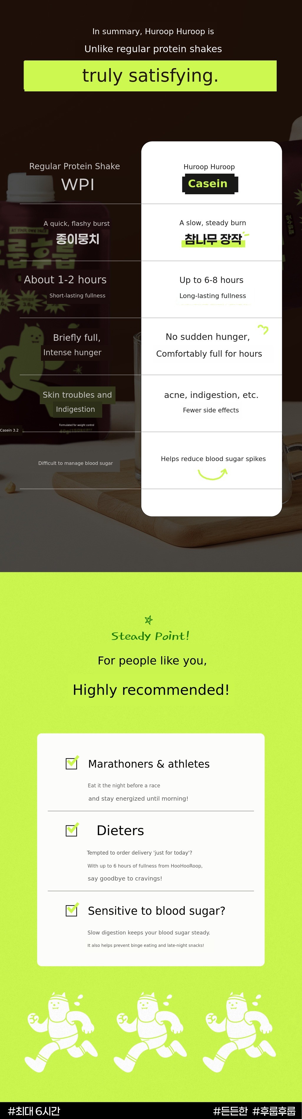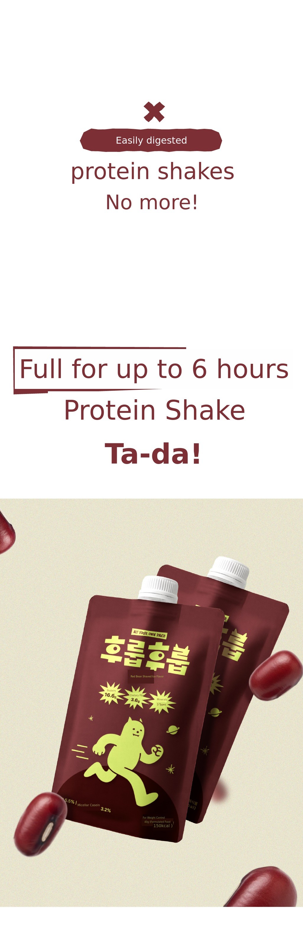 1. 🥤 Casein Protein Shake - Provides 6-hour lasting fullness with casein protein 2. 🍫 Rich Flavor and Nutrition - Contains palbingsoo flavor, high protein, fiber, and minerals 3. 🎁 1+1 Bonus Event - 1300% funded on Wadiz with special bonus offer