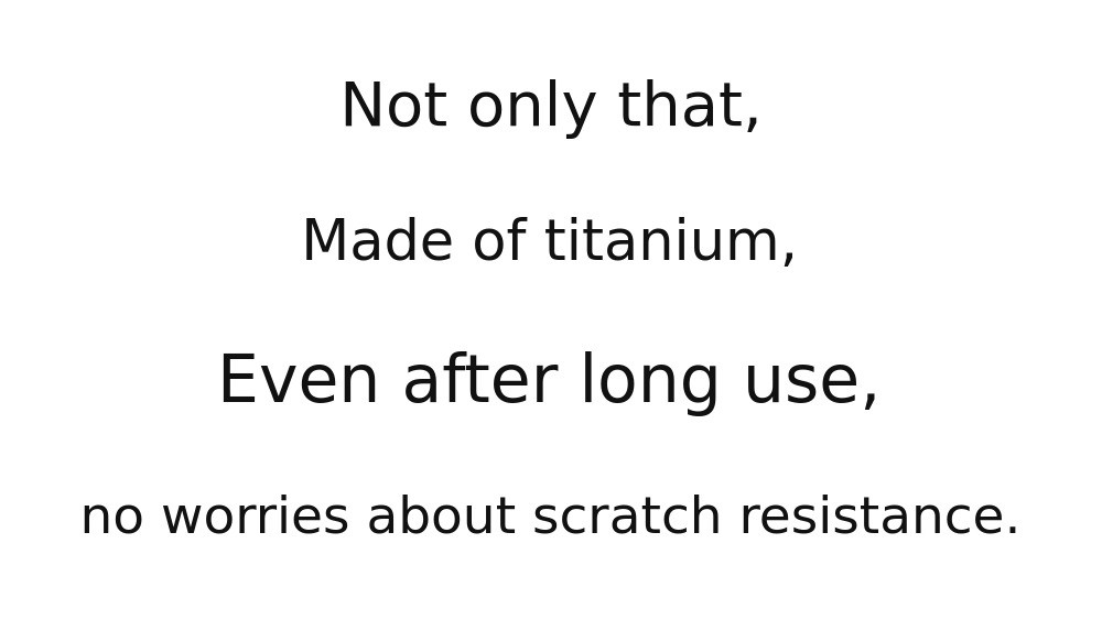 Titanium is lighter than steel but stronger, so it does not bend or dent easily. It is also relatively resistant to scratches and can be worn for a long time.