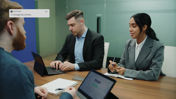 The PVAD (Proximity Voice Activity Detection) AI technology creates an invisible 10cm bubble around the ring, recognizing only the voice spoken within the bubble.