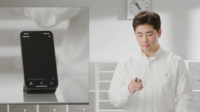 There is no bothersome action required to wake up Wizpering.Without unlocking, looking at your phone, turning on an app by hand, or any other action, simply give a command to the ring and it activates instantly.