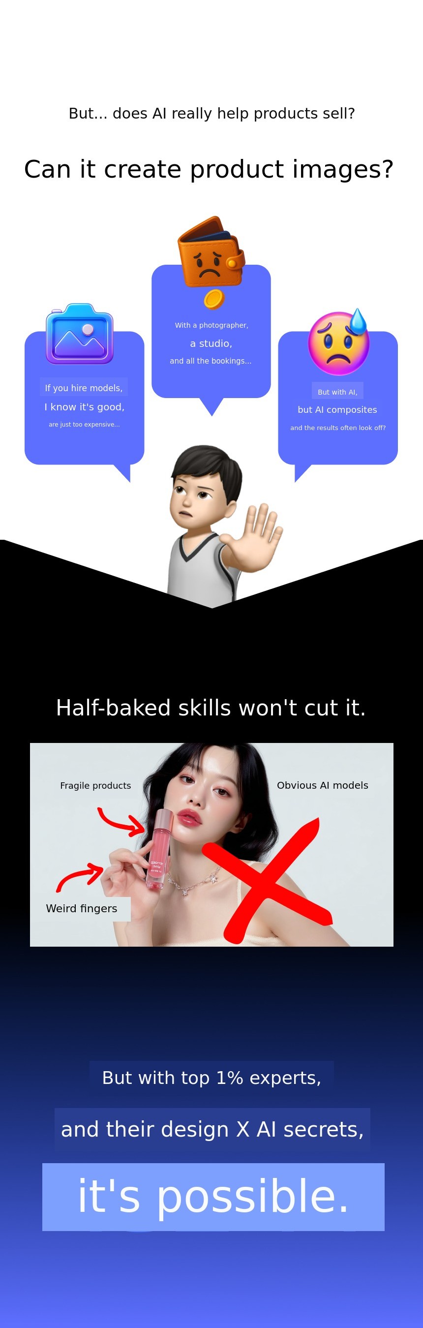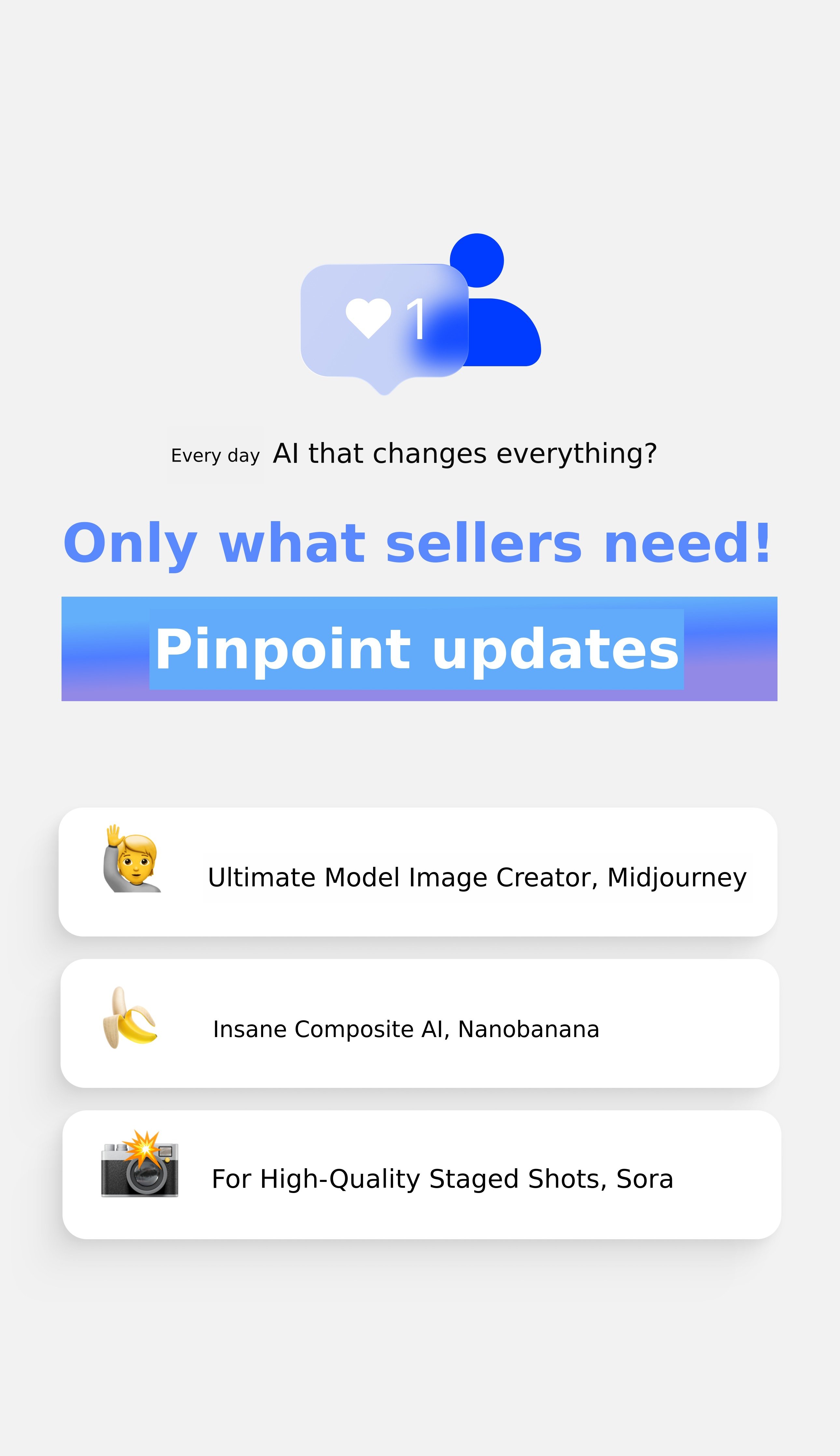Also, with image-generating AI tools (Midjourney, Nanobanana, Sora), you can create model images and various studio shots that make your product stand out.