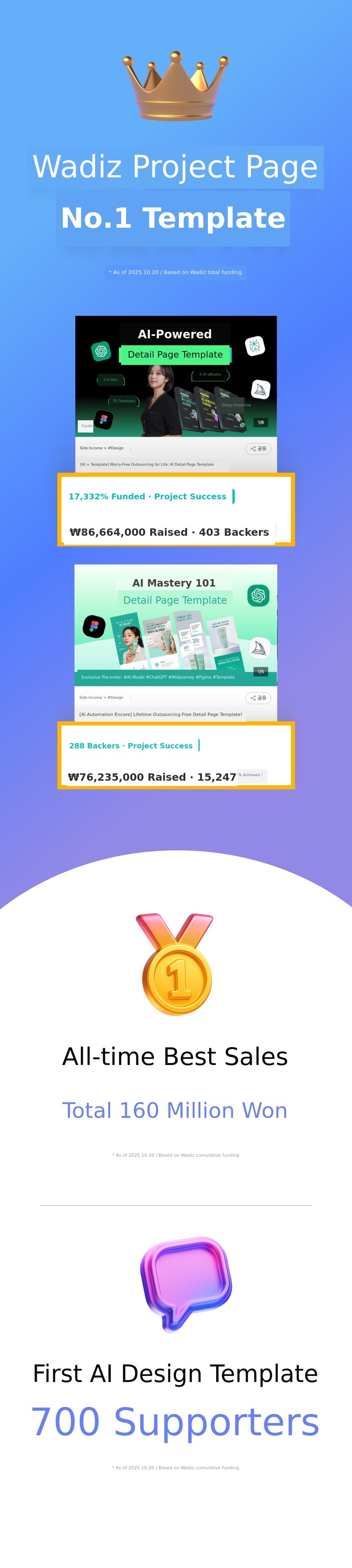 • Accumulated 160 million KRW in AI detail page funding on Wadiz