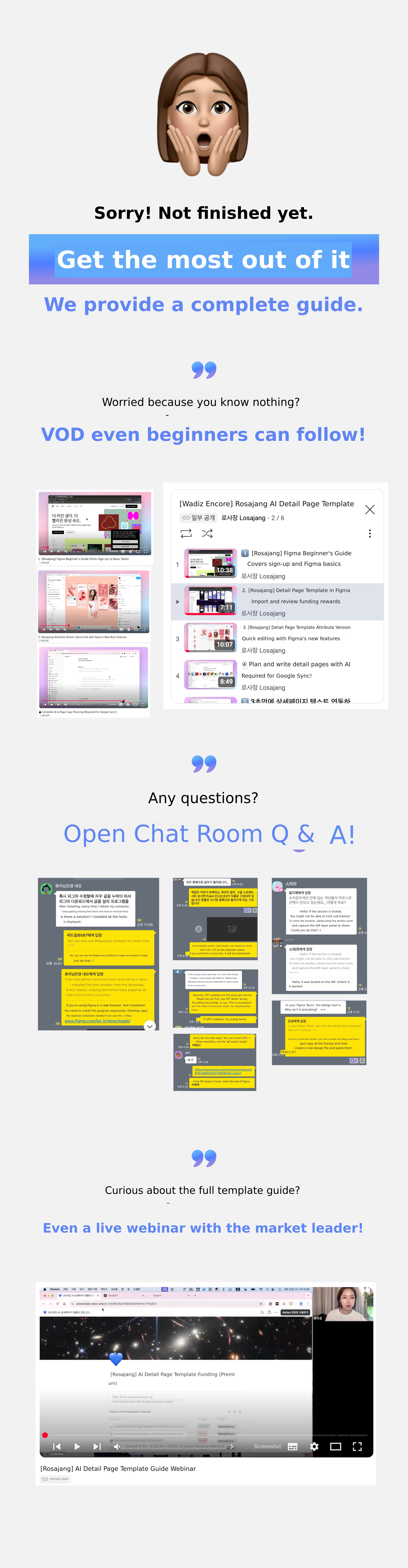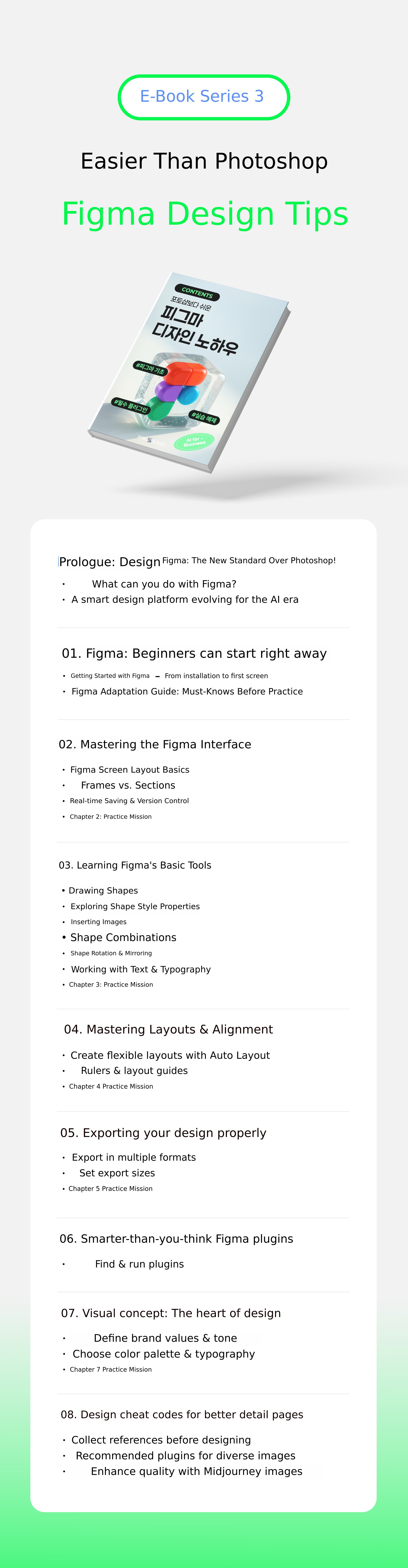 Basic Figma usage, design tips, and template editing methods are explained in the e-book and lecture VOD.