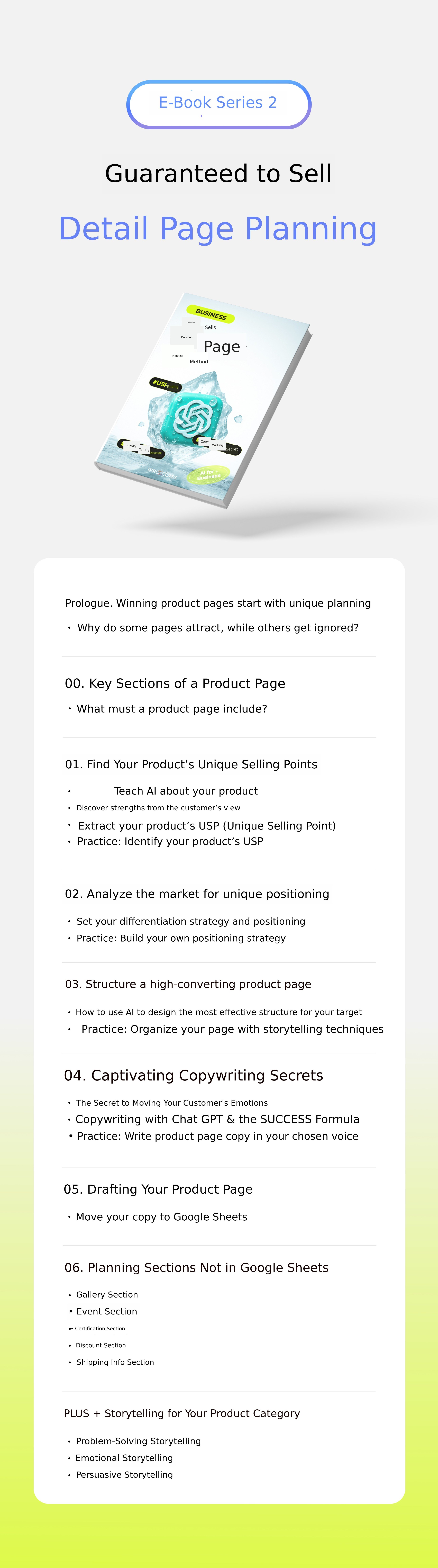 We will use ChatGPT to create everything from a well-selling detailed page structure to copywriting.