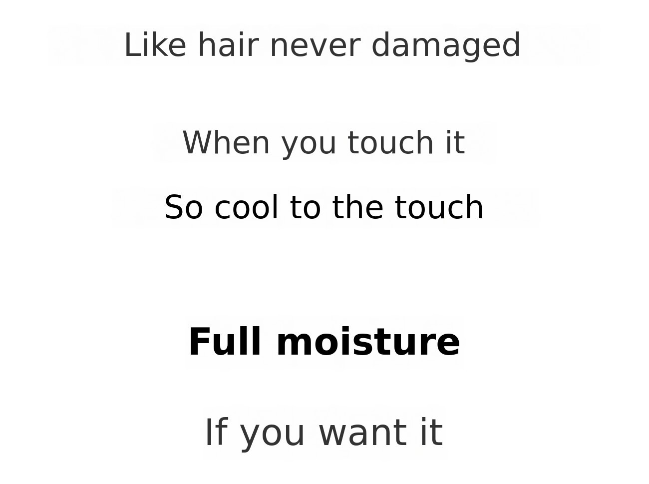 When you use a treatment and rinse it out, your hair definitely feels softer. But from each and every strand,A moisture that seems to fill from within Is hard to feel.OriginallyHealthy hair is so full of moisture that it even feels cool to the touch.