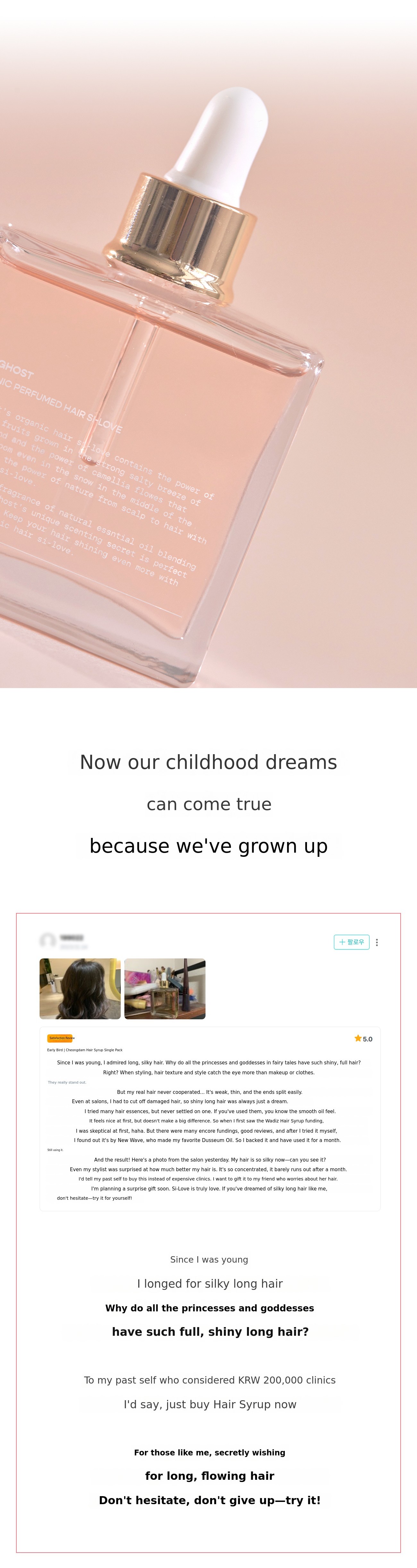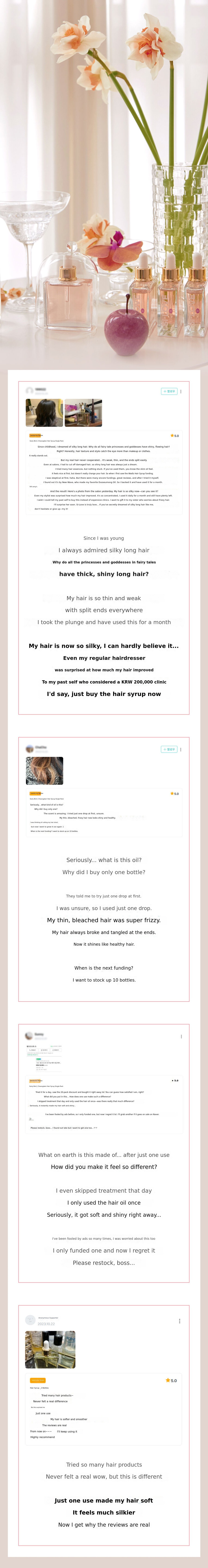 If you've only cared about the ingredients in your skincare so far, from the moment you open Cheongdam-dong Hair Syrup,Make sure to check every ingredient that goes on your hair and scalp as well. Because this is a daily routine for Cheongdam-dong VVIPs.