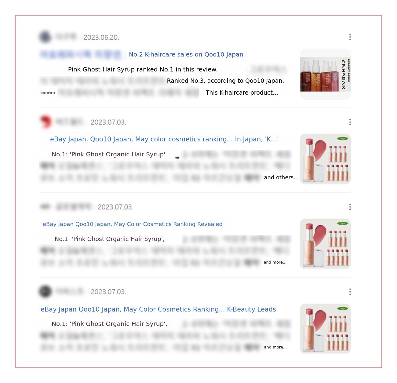 The hair syrup, which was first introduced on Wadiz, has steadily grown outside as well, and now you can even find it in the Japanese market.And in 2023, at Q100, the leading commerce platform in Japan,we finally took first place.