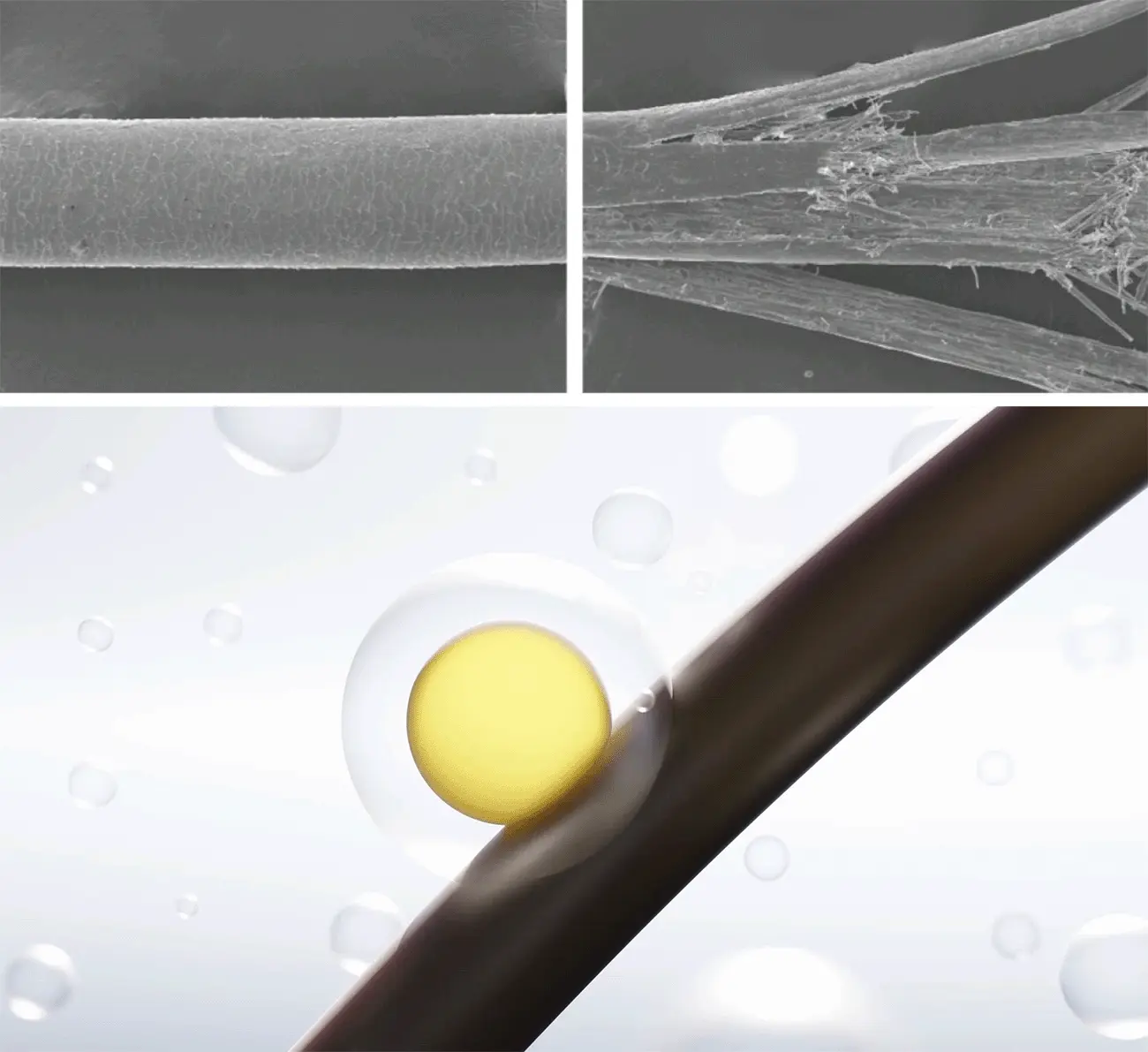 After being absorbed into the hair, 100%The fundamentally different shine and gloss of natural oil,And the lightness that doesn't make your hair greasy, Experience it for yourself.