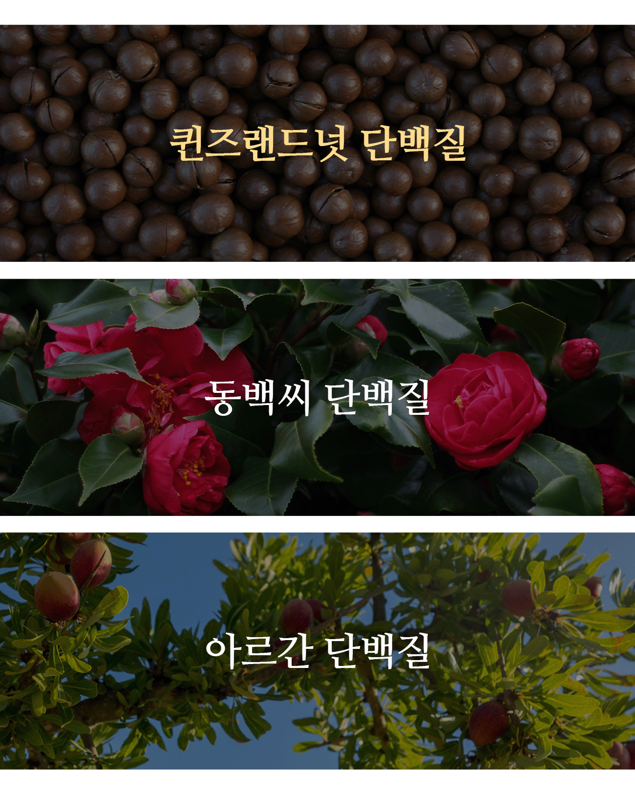 Keratin is ultimately a type of protein, so when it is plant-based protein from nature, it is absorbed the fastest.The hair can become stronger from the core. Especially, plant-based proteinshave a complex and solid structure so even a single drop is packed with keratin. We have blended three types to supplement high-nutrition protein.