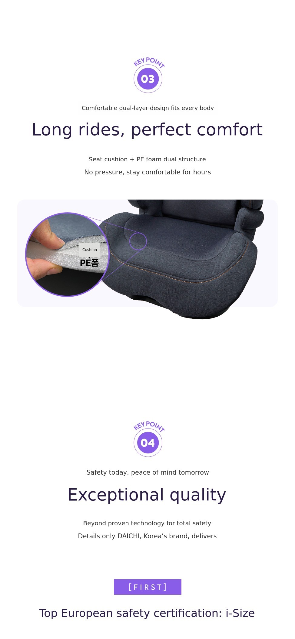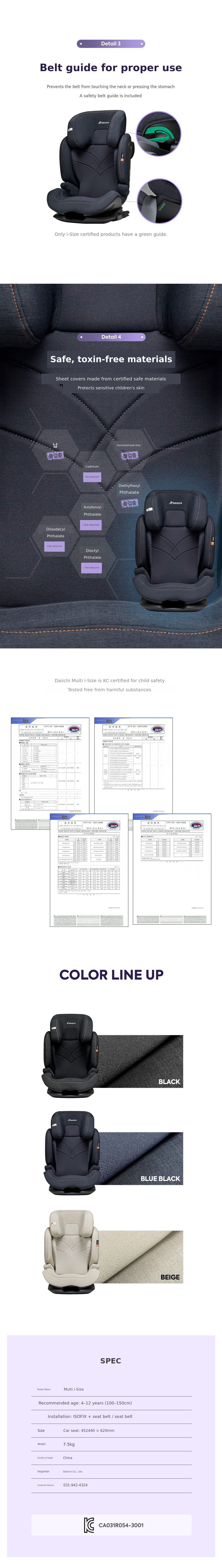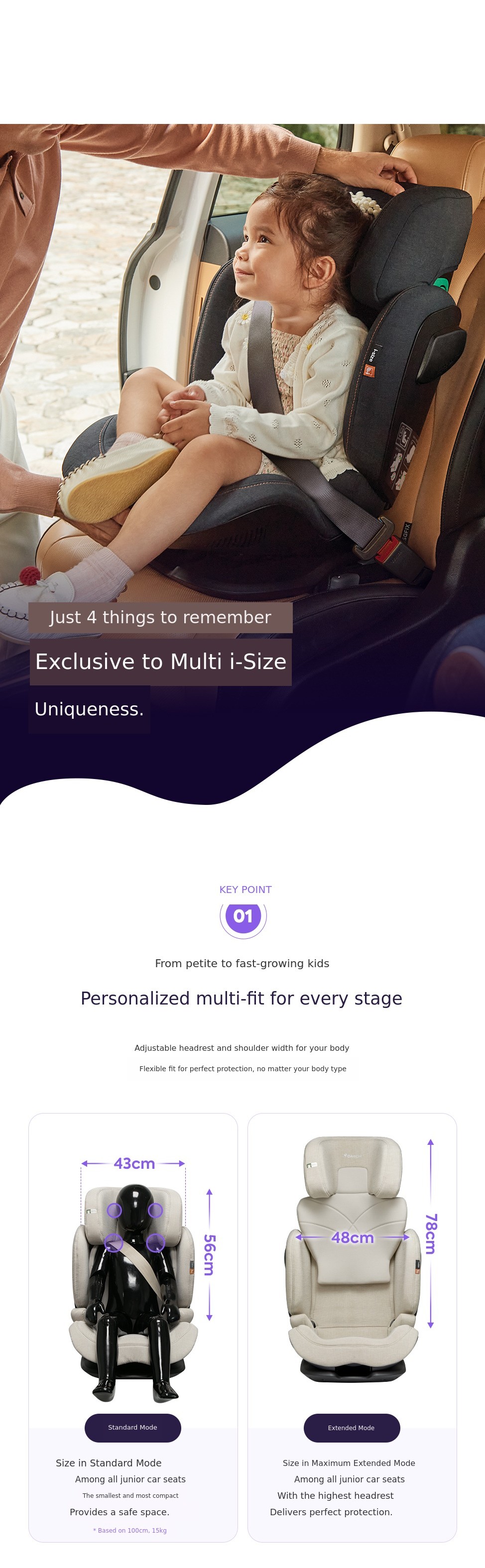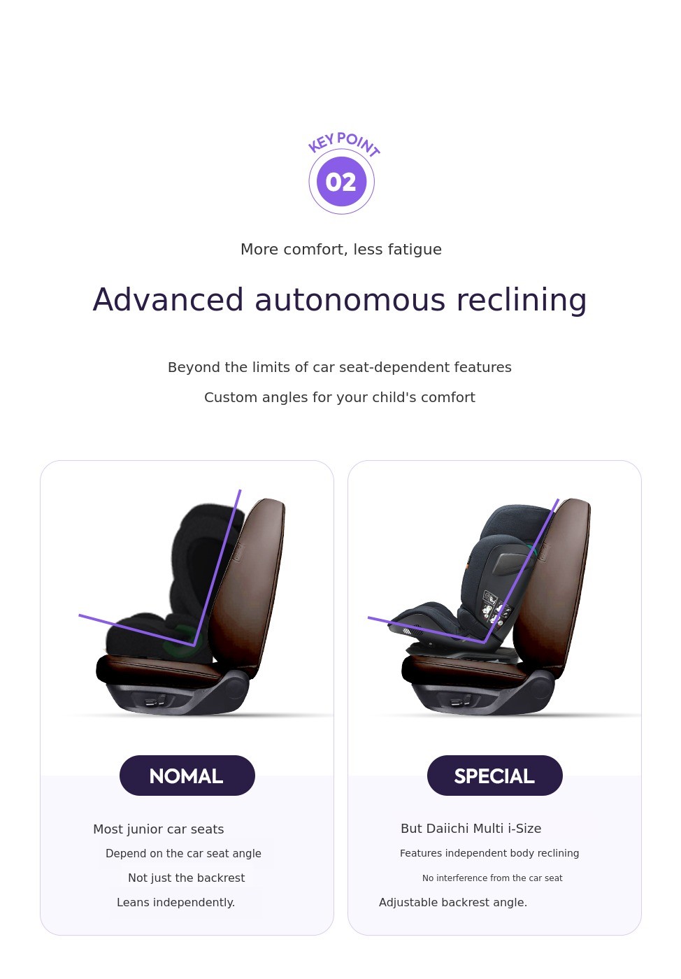 1. πŸ‘Ά Daichi Multi i-Size Junior Car Seat - Safe and comfortable European i-Size certified seat for all body types 2. πŸ”§ Growth-adaptive Multi-fit Adjustment - 7-step adjustable headrest and shoulder width for perfect fit 3. 🎁 Limited 100 Units Exclusive Discount - 45% off 1+1 set with bonus protective and kick mats