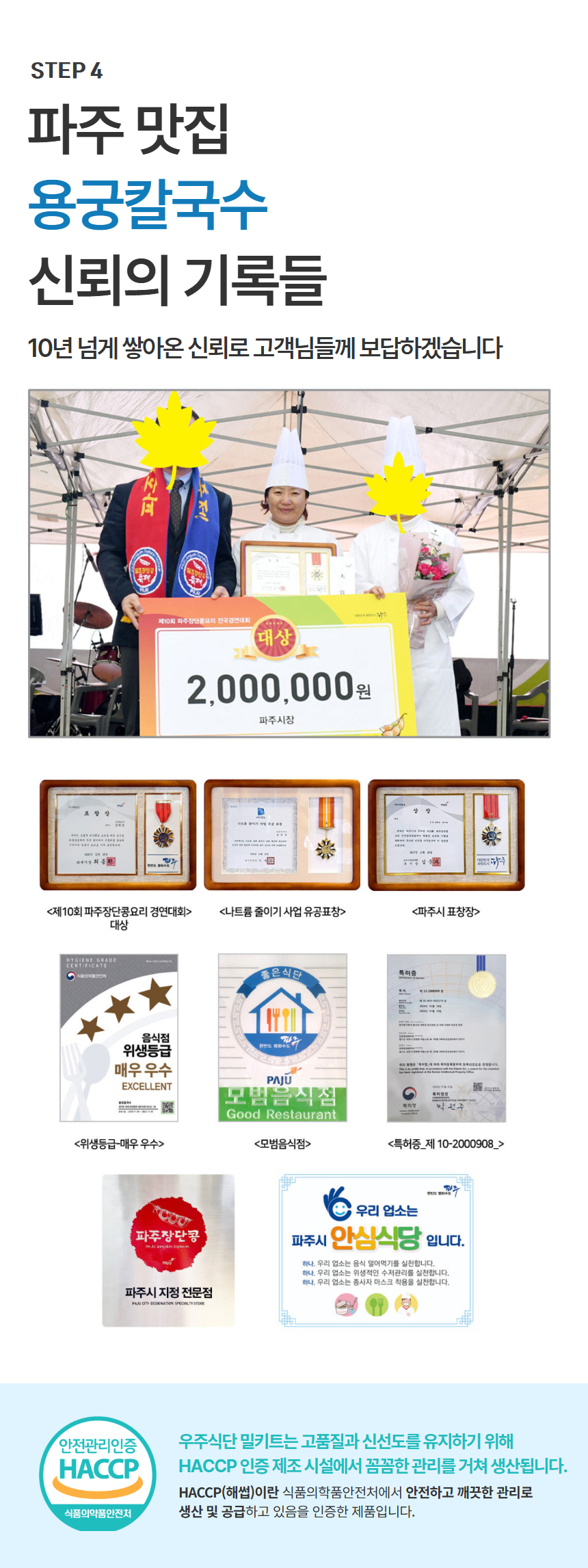 No more unhealthy food just because it's tasty, or tasteless food just because it's healthy! Paju Jangdan Soybean Noodles are more than just a simple noodle dish. They are our small gift for everyone who cares about their family's health.