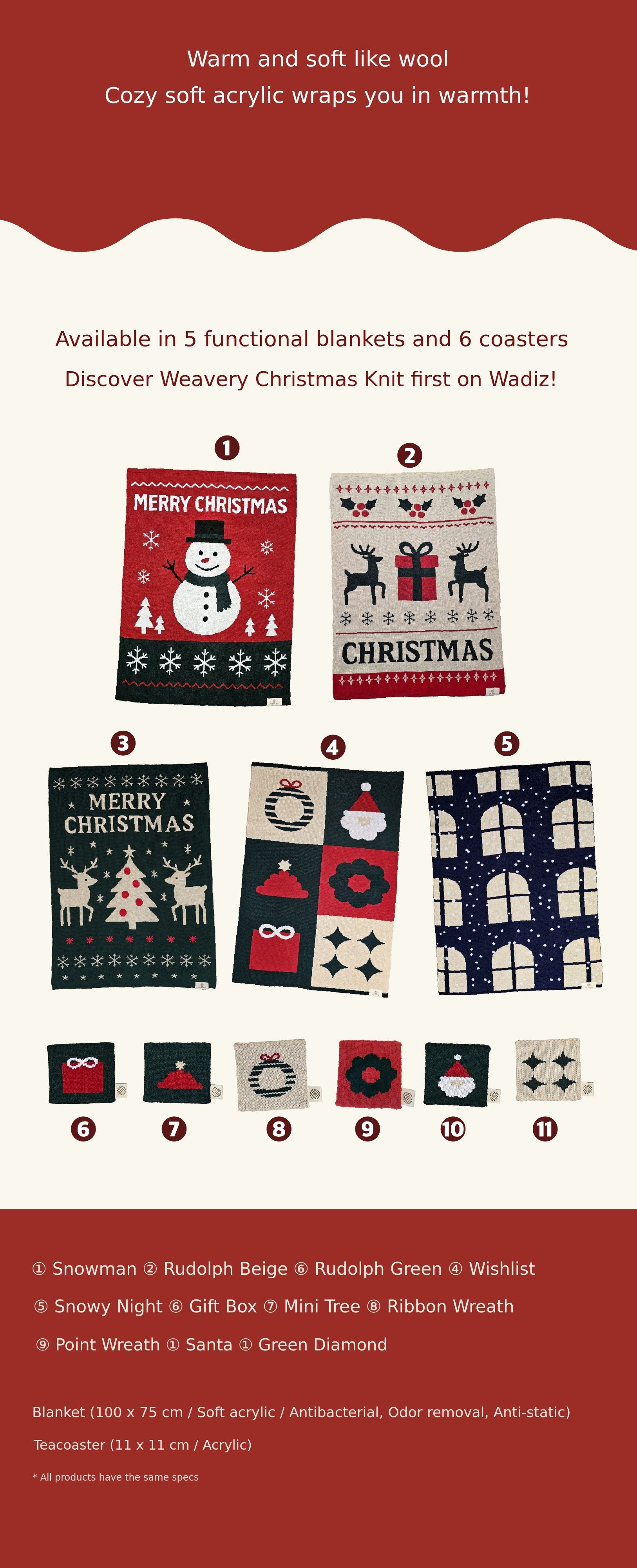1. 🧣 Emotional Jacquard Knit Blanket & Coaster - Domestic jacquard knit delivers warmth and unique design 2. ❄️ Static & Germ ZERO Functional Yarn - Prevents static and bacteria for comfortable, safe use 3. 🎄 Christmas Design & Discount Benefits - Festive mood with 30% off coaster sets for supporters