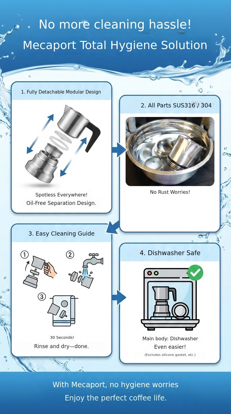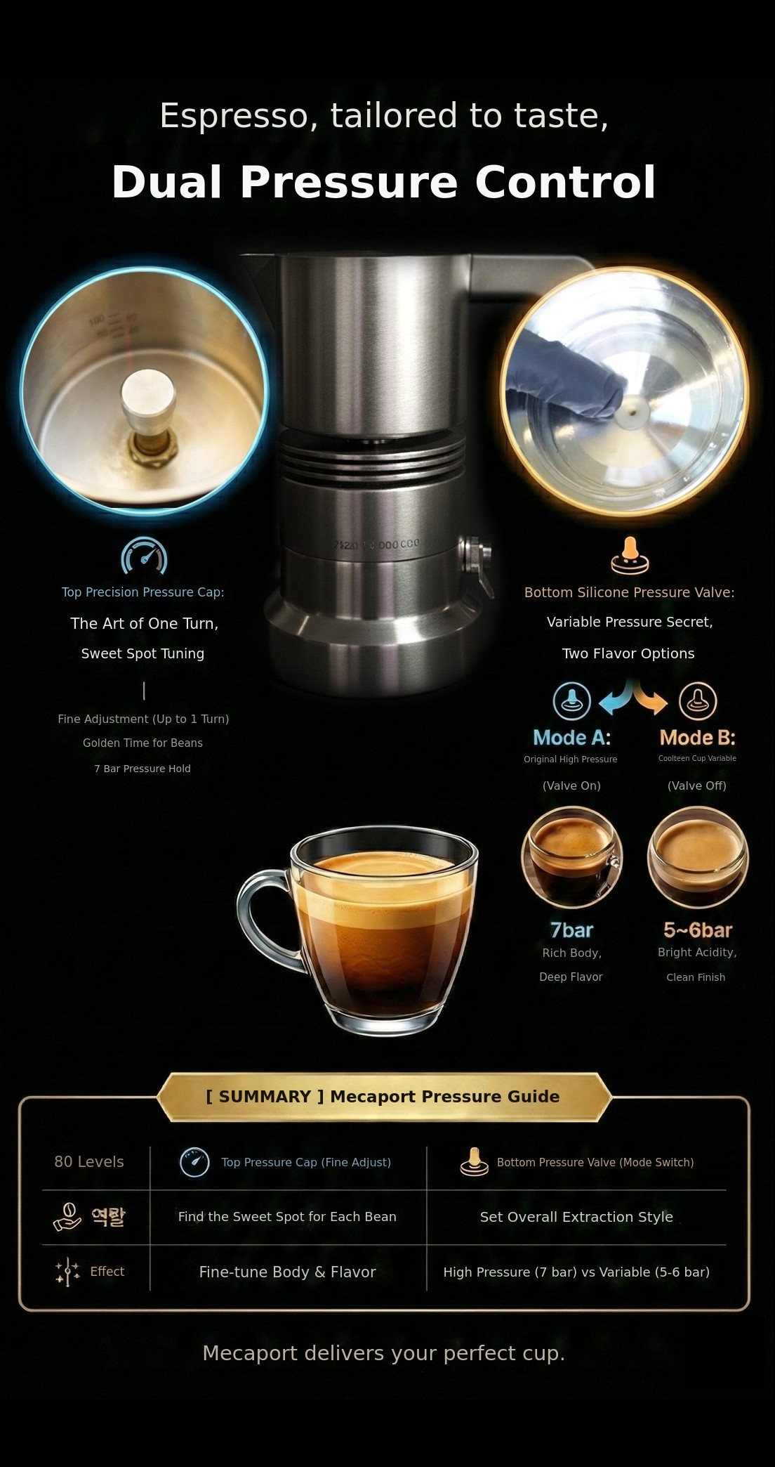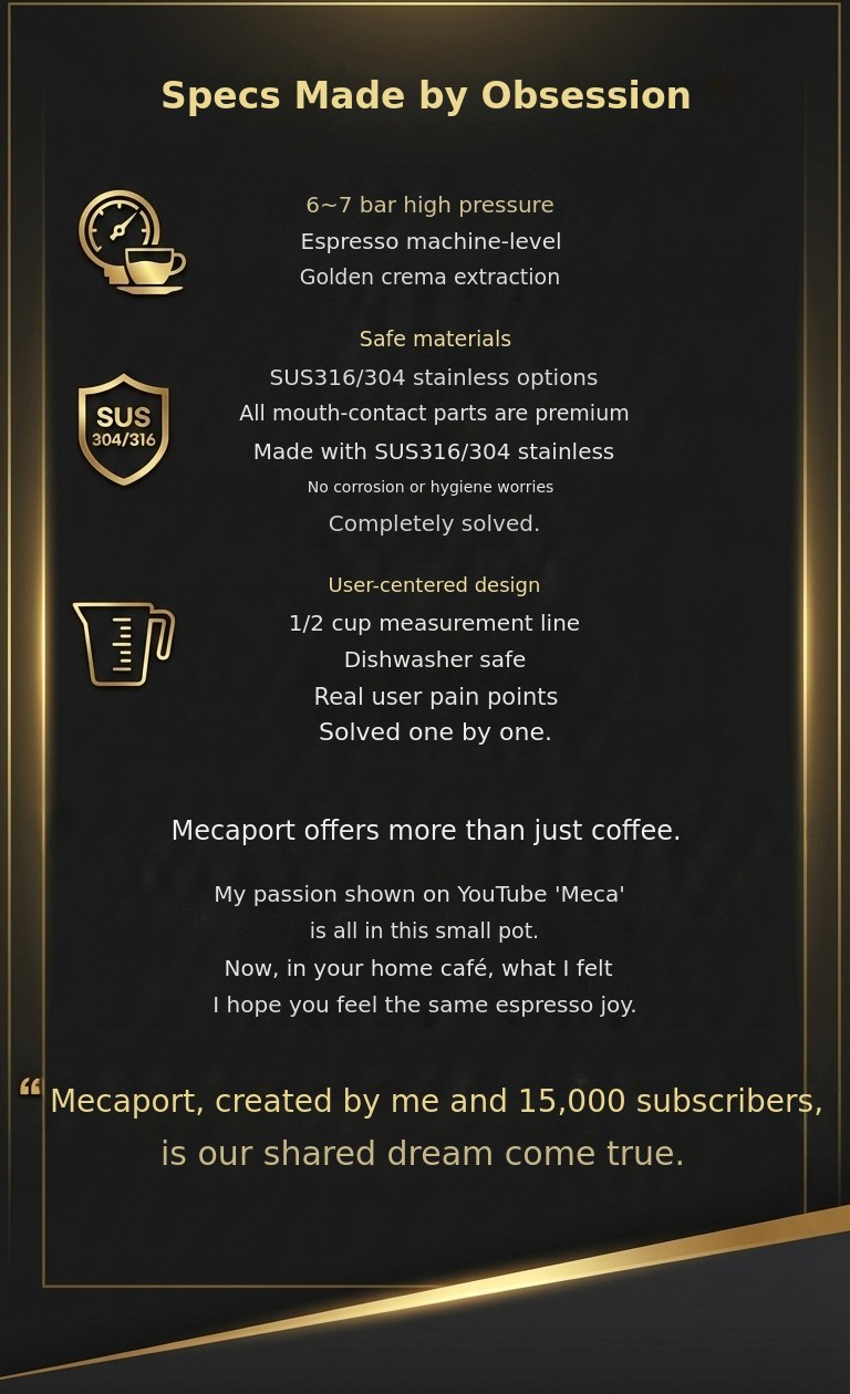 1. β Machine-level 7bar Espresso Extraction - Overcomes moka pot limits to brew authentic espresso at home 2. π οΈ Premium Stainless Steel Material - Uses SUS316/304 for enhanced hygiene and durability 3. π― Customizable Pressure Control System - Top pressure cap and bottom valve enable diverse flavor profiles