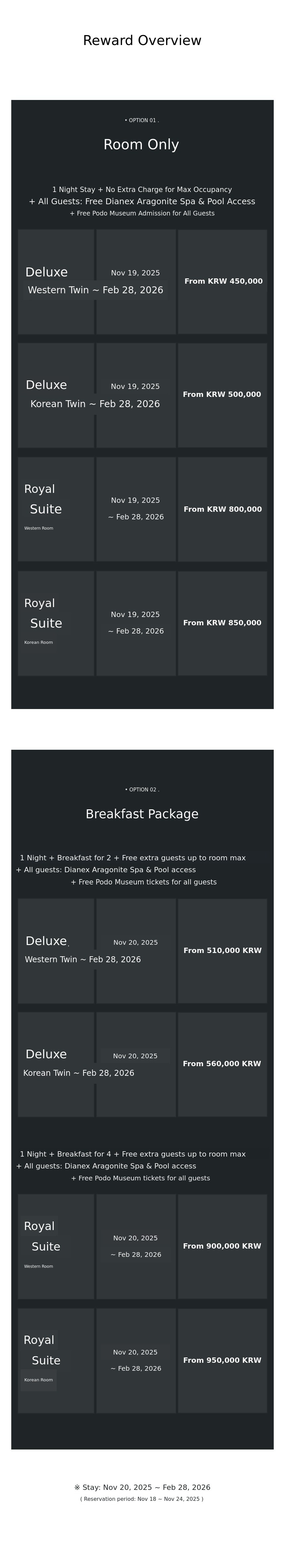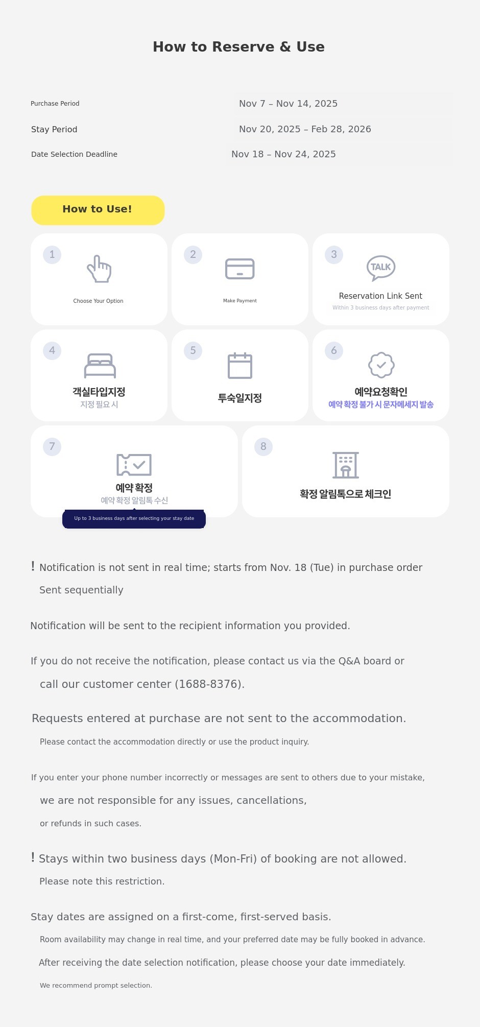 - If the stay date is not designated by Monday, November 24, 2025, all reservations will be canceled in order starting from Tuesday, November 25, 2025.