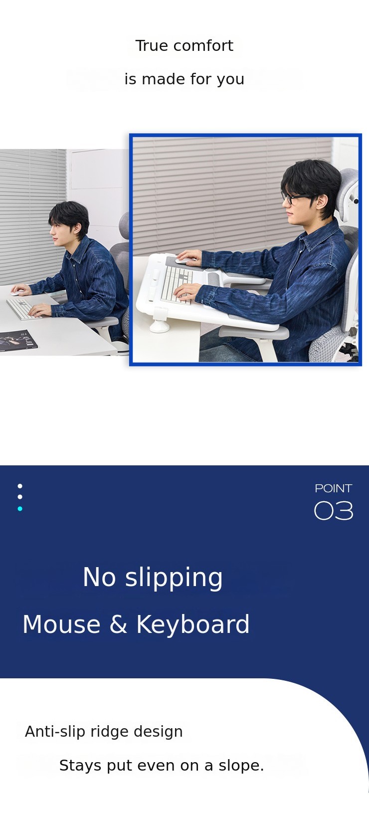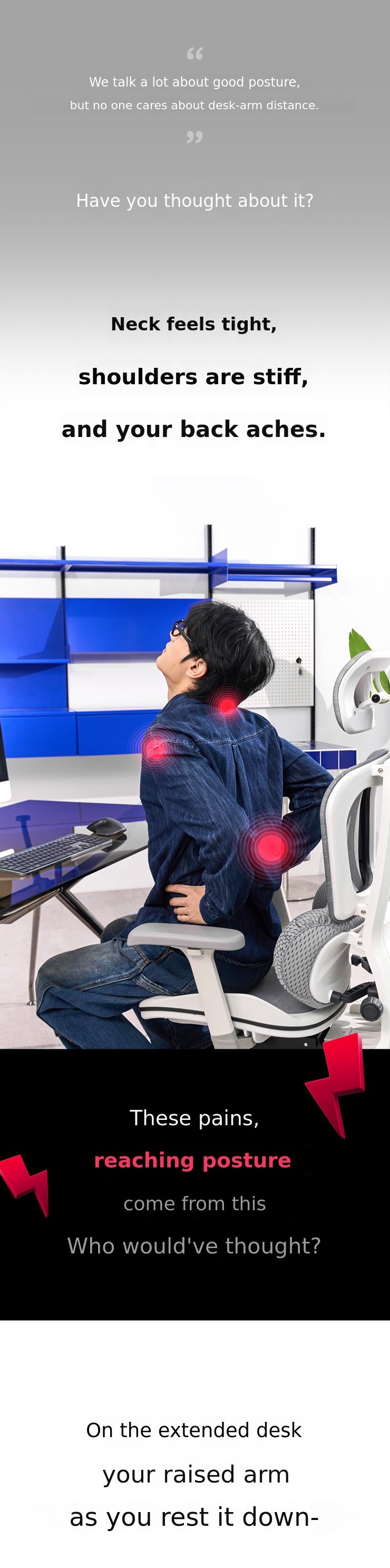 Students and office workers who work at a desk on a computer all day often use the keyboard or mouse with their elbows suspended in the air. As a result, even with a good chair, it is easy to experience neck and shoulder tension, forward head posture, and back pain.