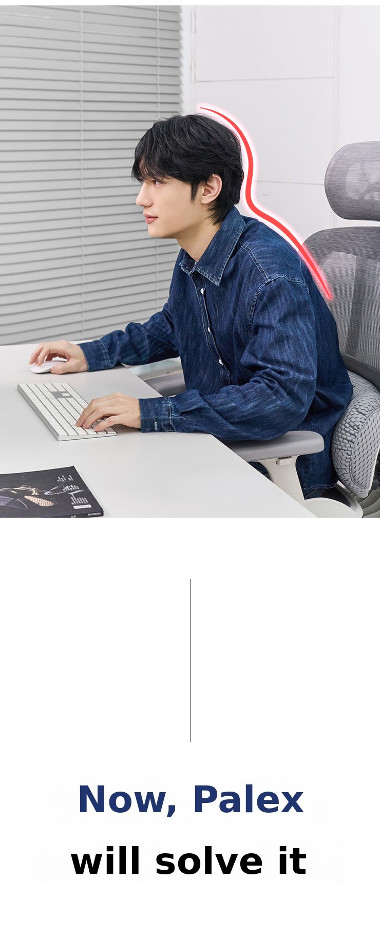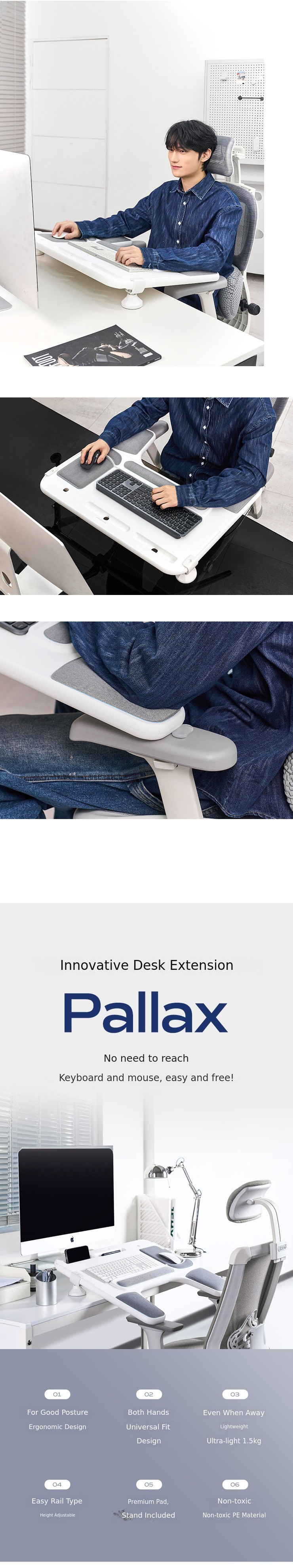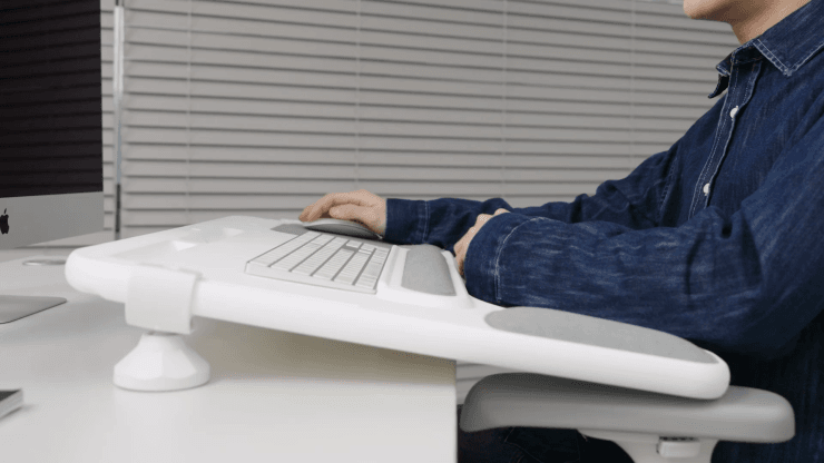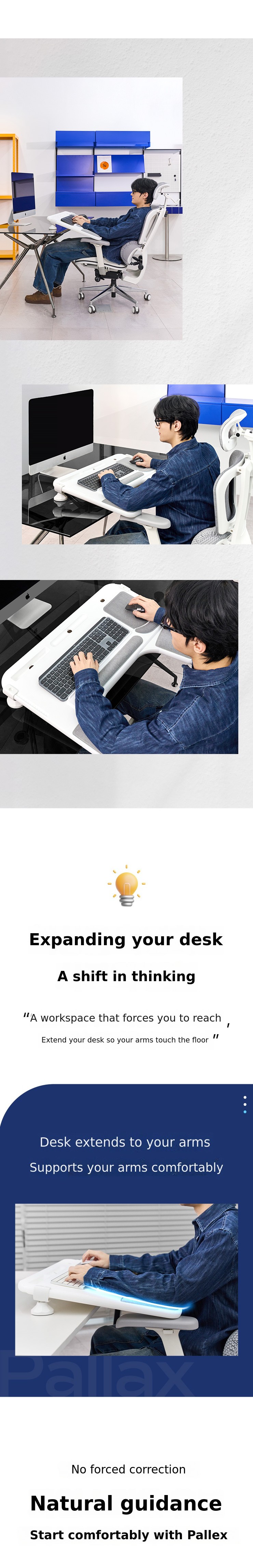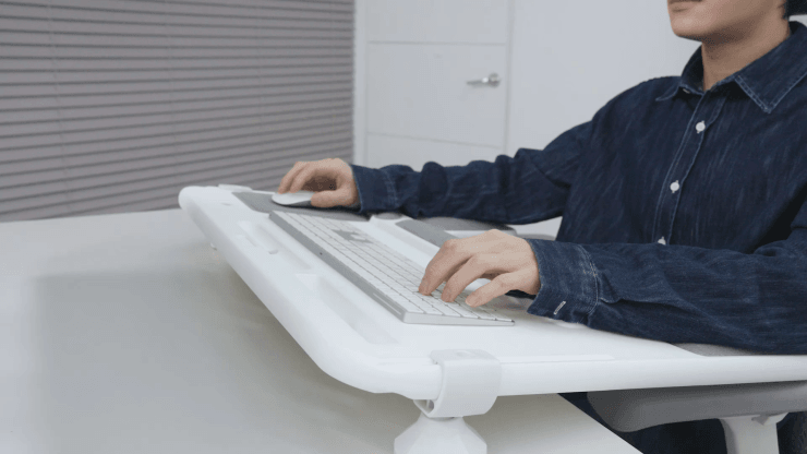 Peach's Palex (Pal+Relax) is an innovative desk extension product that extends the desk up to the armrests of the chair, providing stable support for the elbows and maintaining comfort without musculoskeletal strain even during long hours of work.