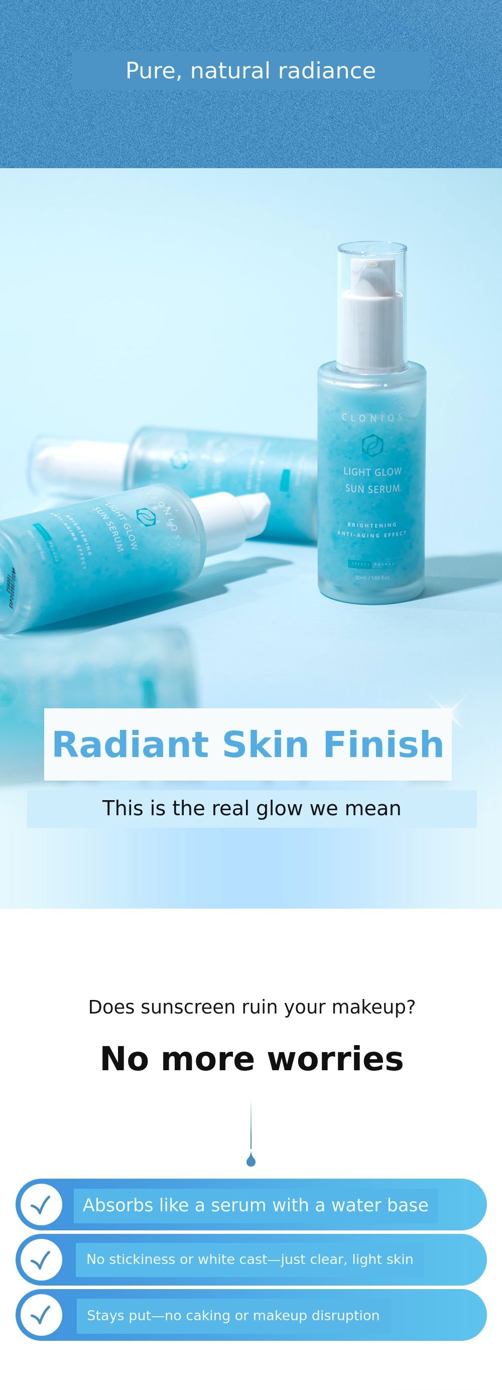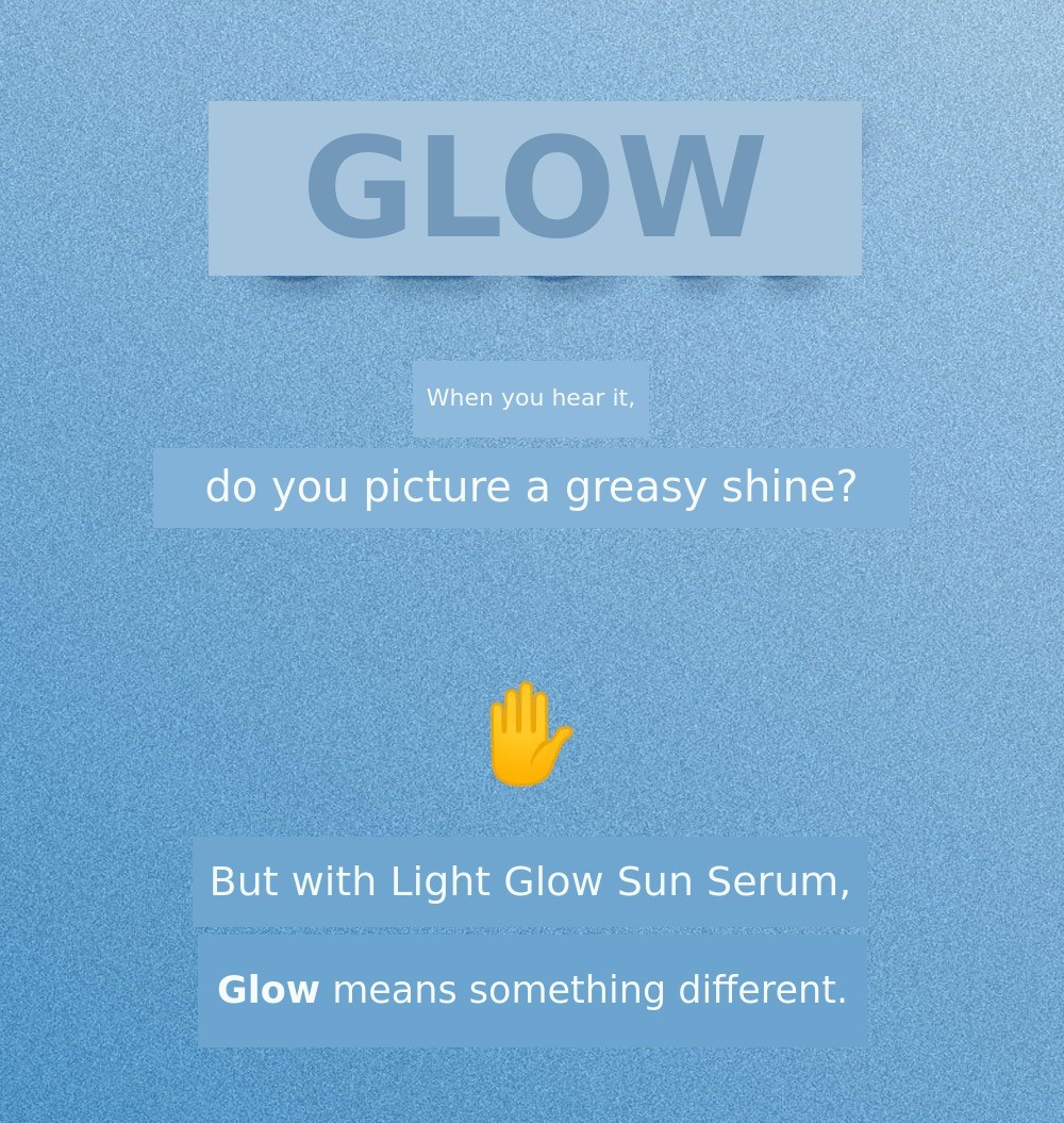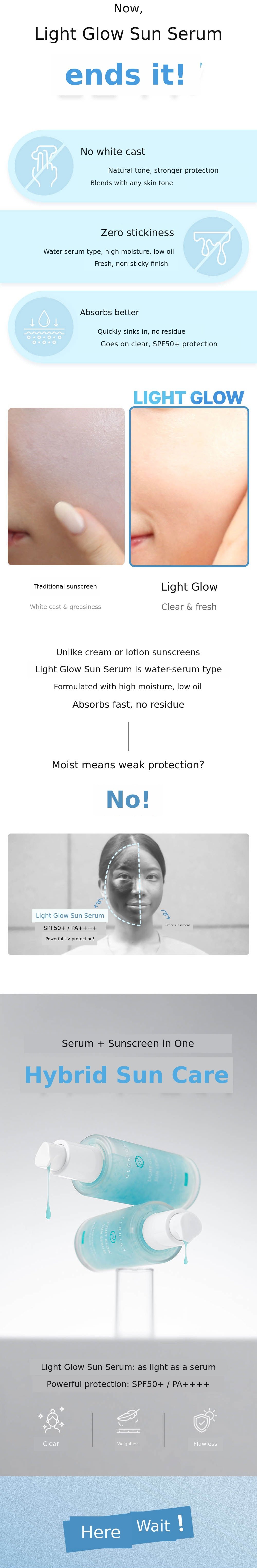 1. โ๏ธ 4th Generation Glow Sun Serum - Transparent, non-whitening sun serum with refreshing finish 2. ๐ฟ Safe for Sensitive Skin - Dermatologically approved, suitable for sensitive and delicate skin 3. ๐ Social Contribution Included - Part of funding proceeds donated to visually impaired welfare