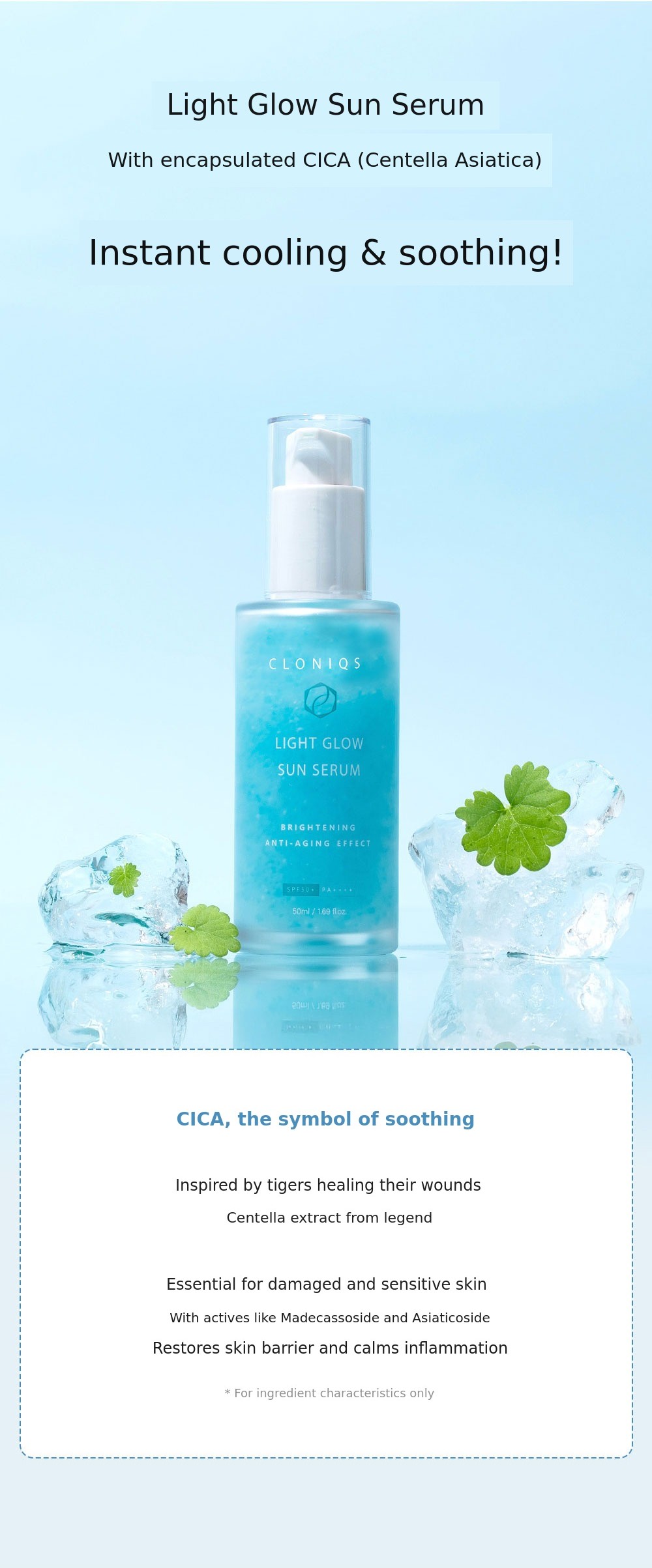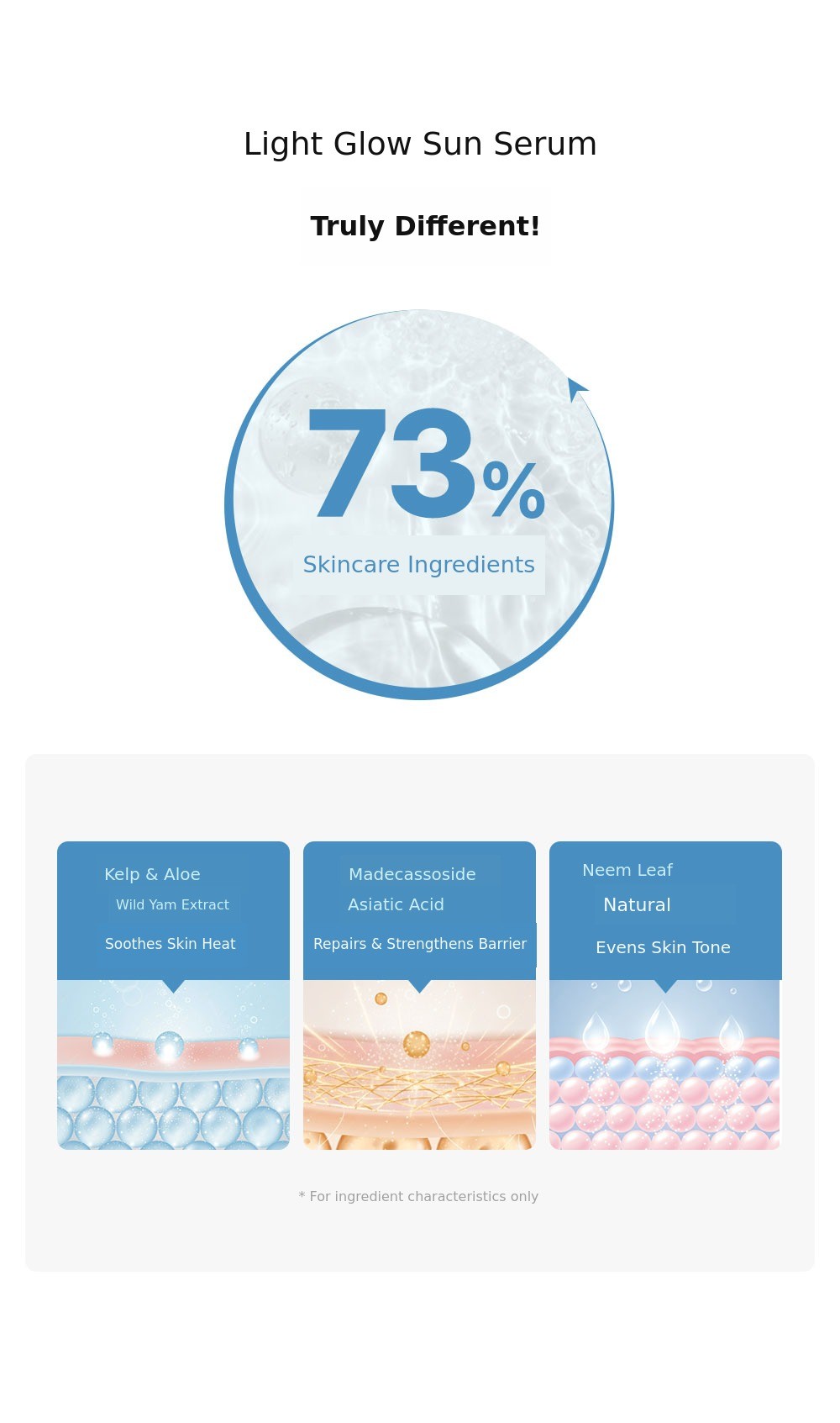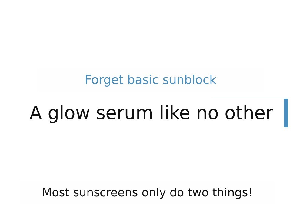 1. โ๏ธ 4th Generation Glow Sun Serum - Transparent, non-whitening sun serum with refreshing finish 2. ๐ฟ Safe for Sensitive Skin - Dermatologically approved, suitable for sensitive and delicate skin 3. ๐ Social Contribution Included - Part of funding proceeds donated to visually impaired welfare