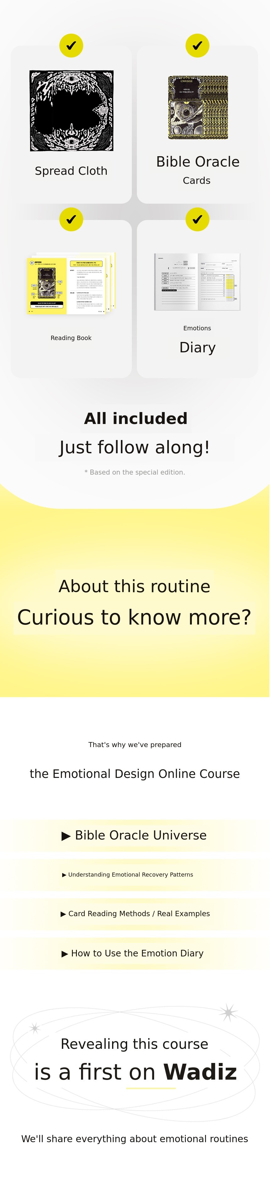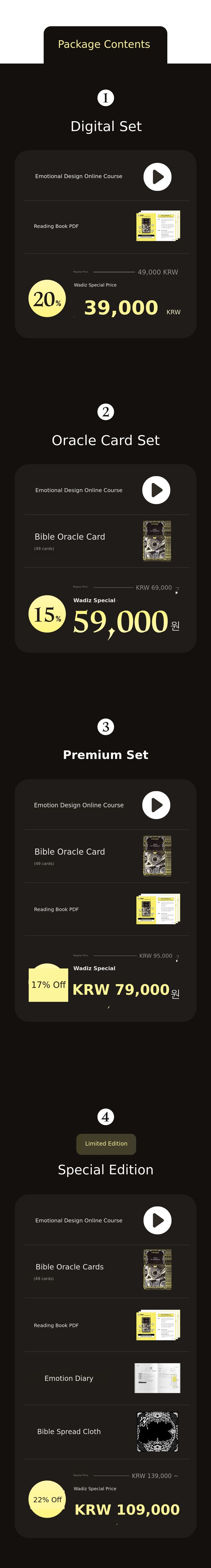 A. This project is exclusively funded on Wadiz. There are no plans to sell the Vible Oracle cards or the Emotion Design course separately after this funding. In other words, this is your only opportunity.