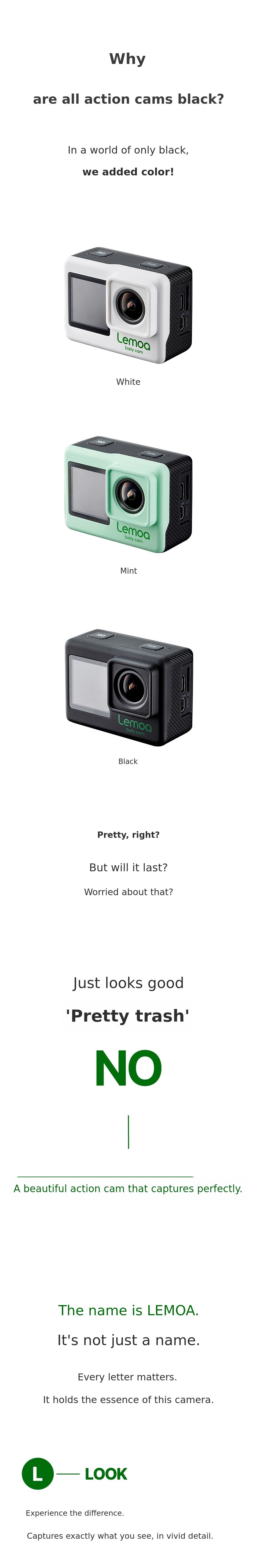 We will continue to create action cameras where emotion and technology coexist, so that everyone in front of the camera can feel the joy of recording. LEMOA is the beginning and our confidence.