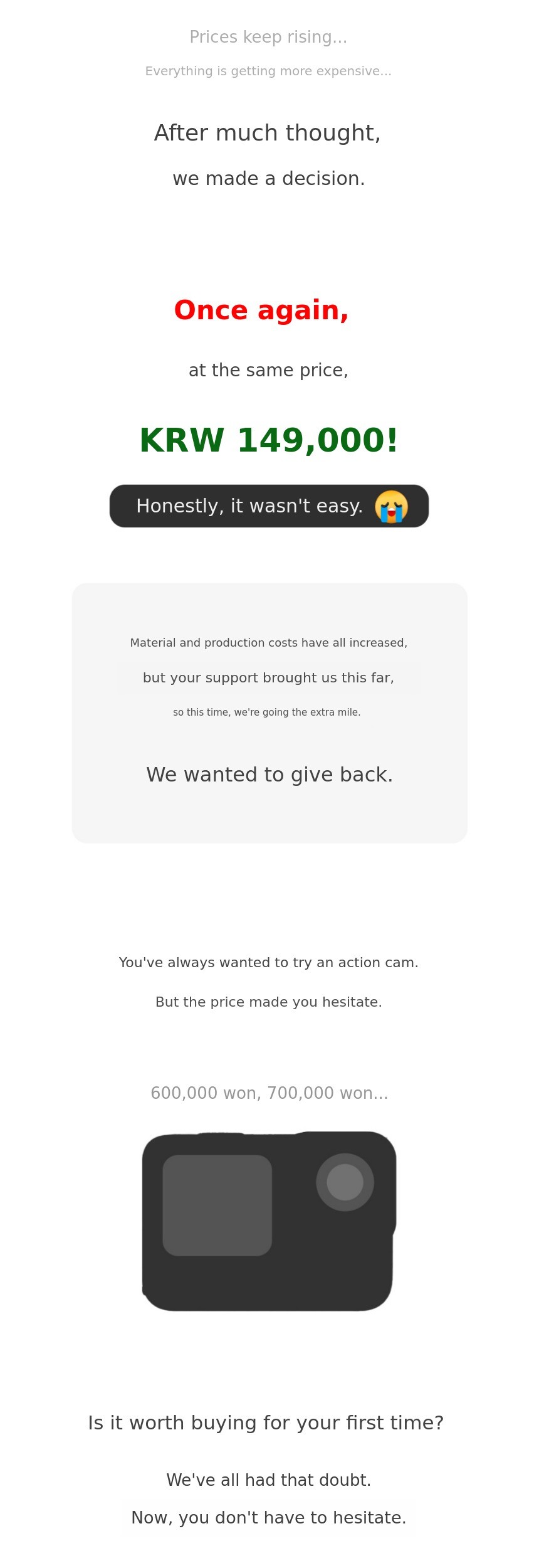 Another problem was 'complexity.' Even though I wanted to capture amazing travel videos, action cameras with complicated features felt like professional equipment from the start, making them hard to approach.
