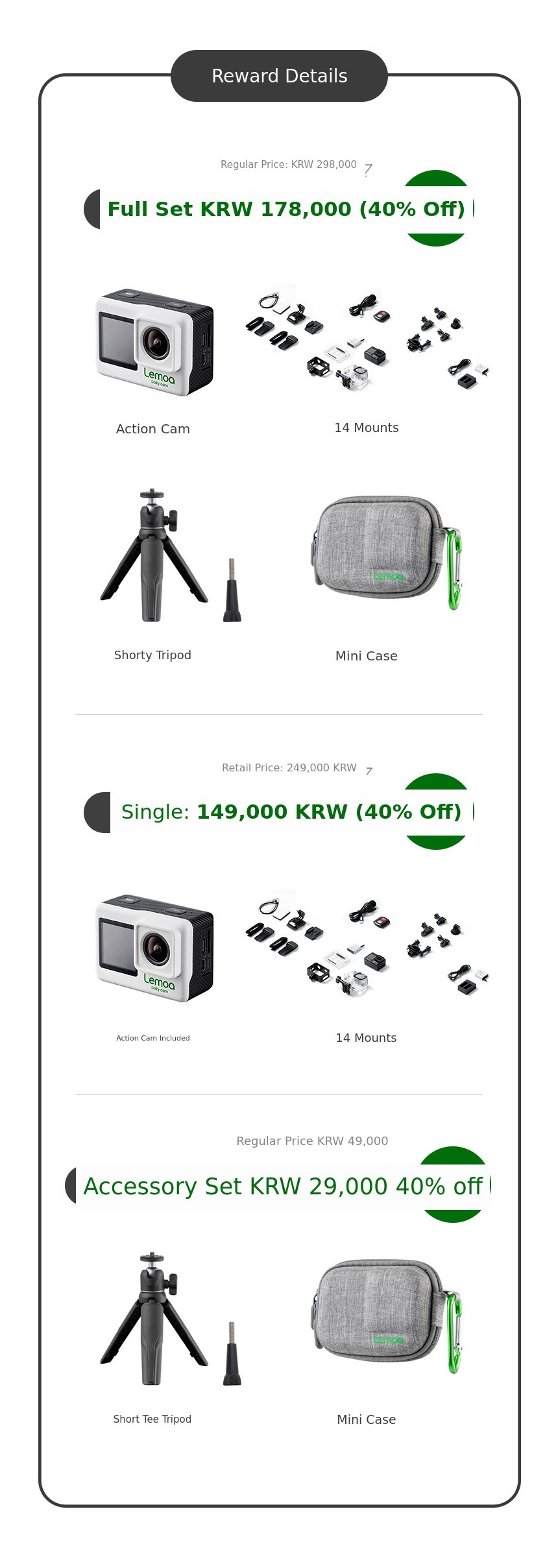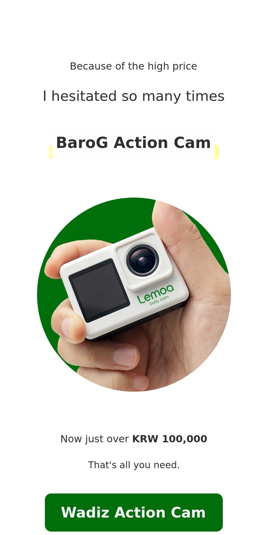 We hope the LEMOA action camera will become a part of more people's travels and daily lives. Wadiz is a place that supports new ideas and completes products together with supporters, so we are starting LEMOA's first journey here. With your feedback and support, we will create an even more perfect action camera.