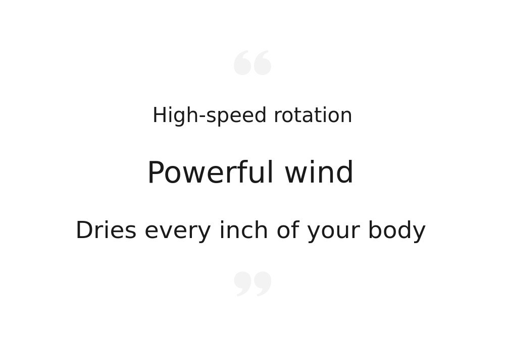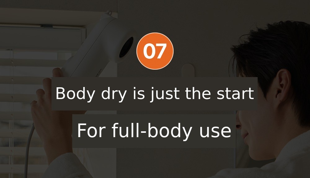 The powerful wind not only dries your lower bodybut also dries your whole body strongly enough to reach your head.