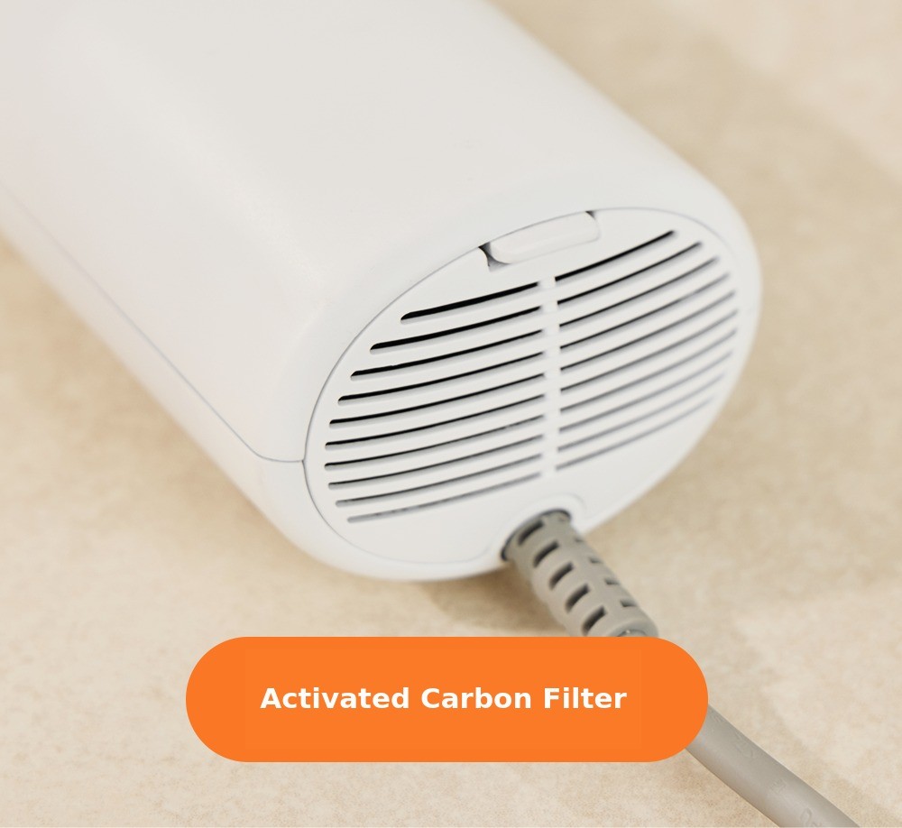 Activated carbonremoves odor molecules floating in the air andcompletely eliminates other harmful gases, as well.