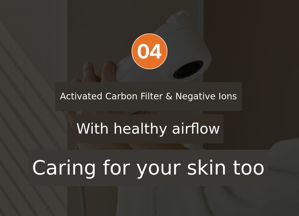 Equipped with an activated carbon filter in the body dryer,it purifies the air that is released, creating healthy wind.