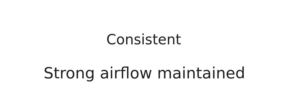 The distance and angle at which the wind reaches are consistently maintained.