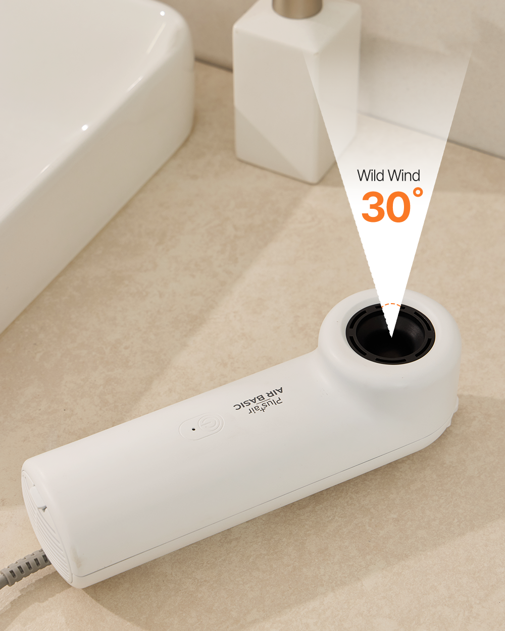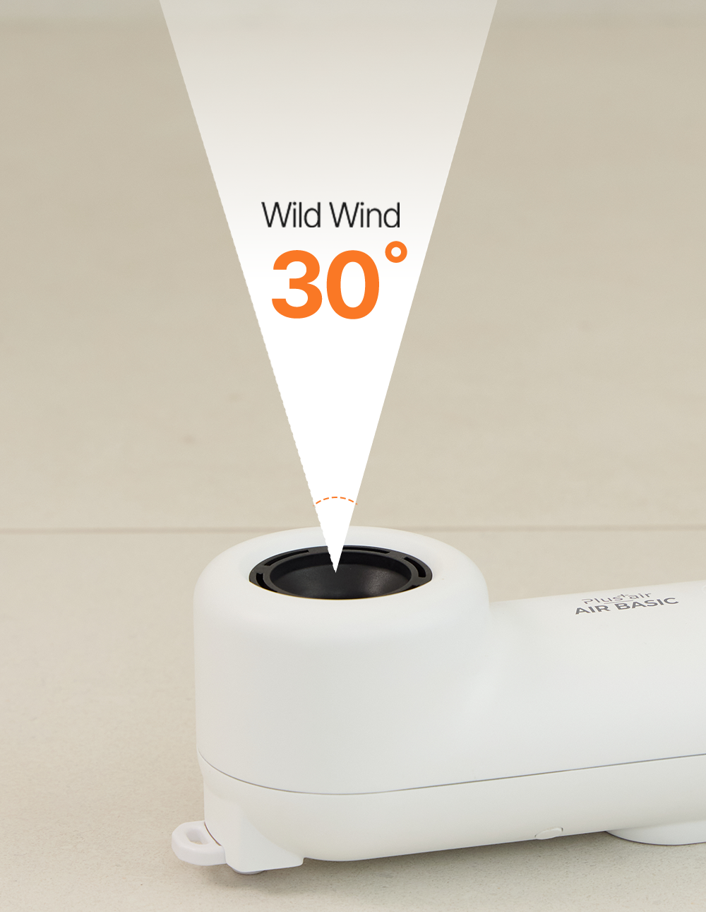 Therefore, we set the angle at which the body dryer wind spreadsto 30 degrees so that it can disperse effectively.