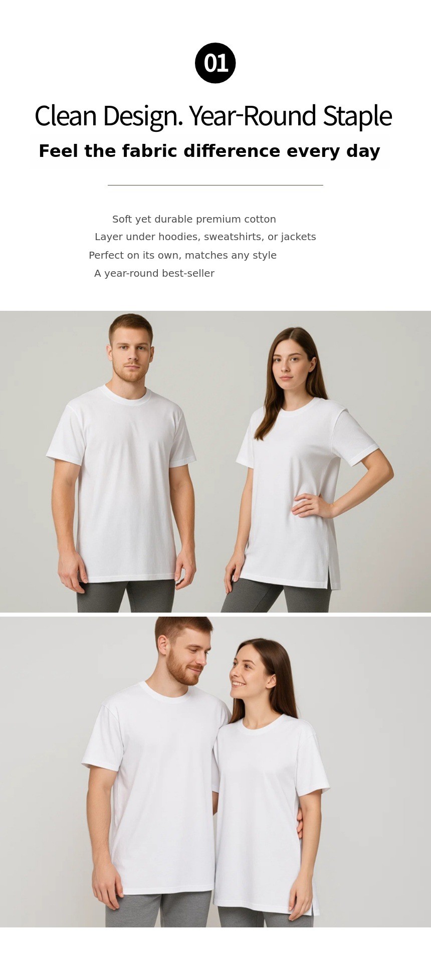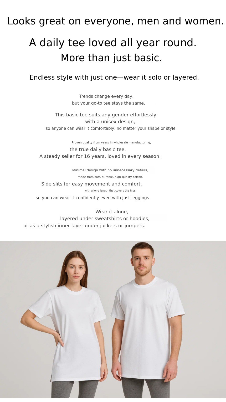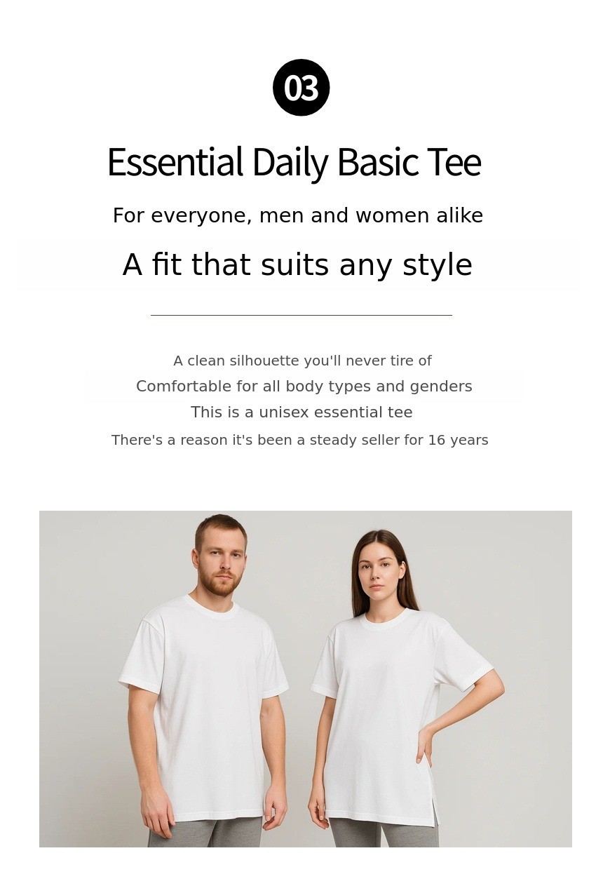 [6th Encore] Premium Cotton & Side Slits: Basic T-Shirt for Men & Women (Wear Solo or Layered)