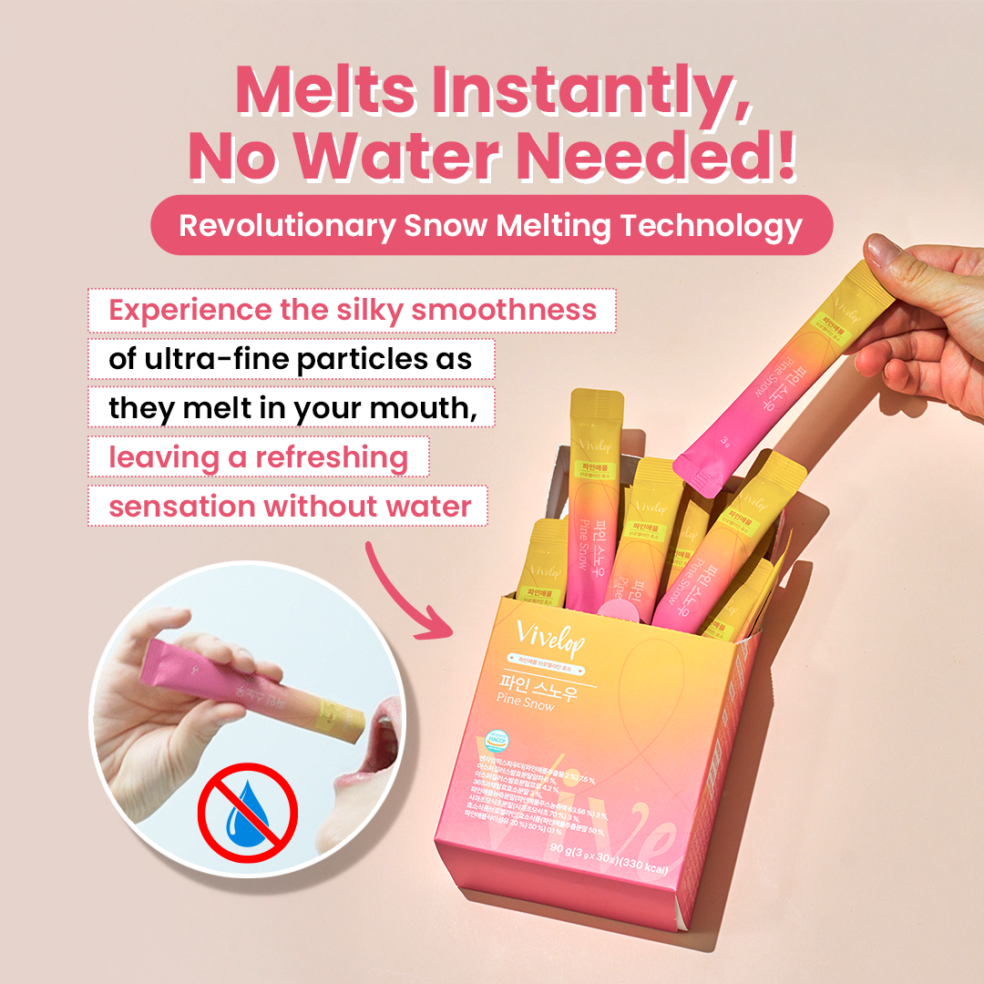 'Pine Snow' contains cool sweet powder that melts softly in your mouth, making it delicious and convenient to take every day.