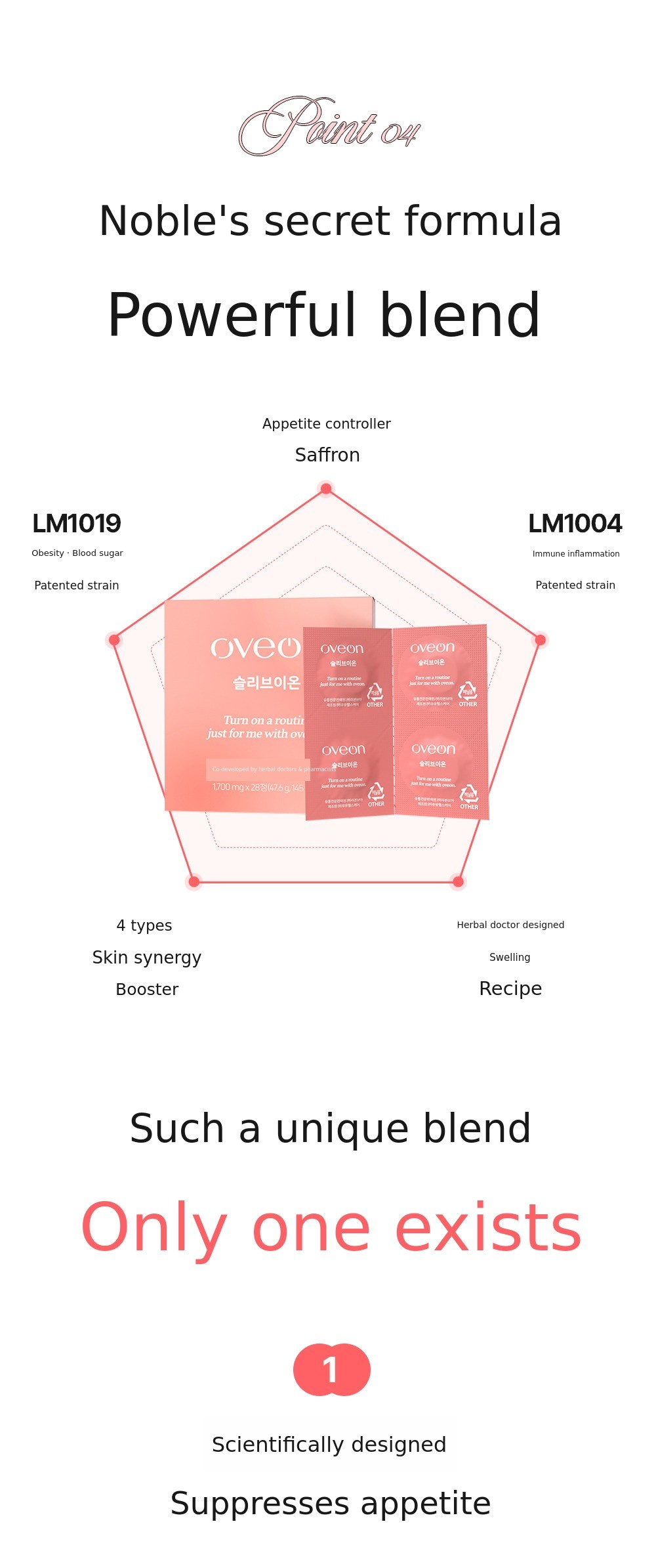 We added patented strains · skin synergy ingredients to complete a slimming formula that manages appetite, body fat, skin, and immunity all at once.