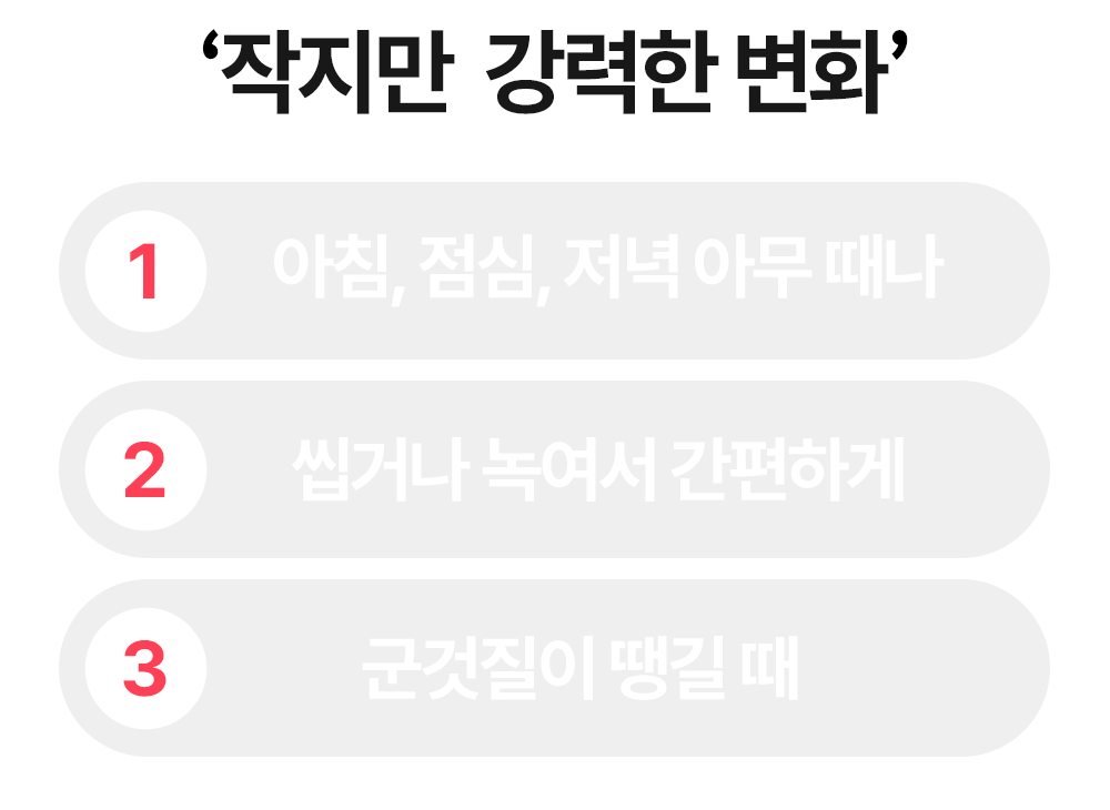 → Take one tablet a day, anytime you like. On your way to work, after lunch when you feel sleepy, or when you crave a late-night snack,