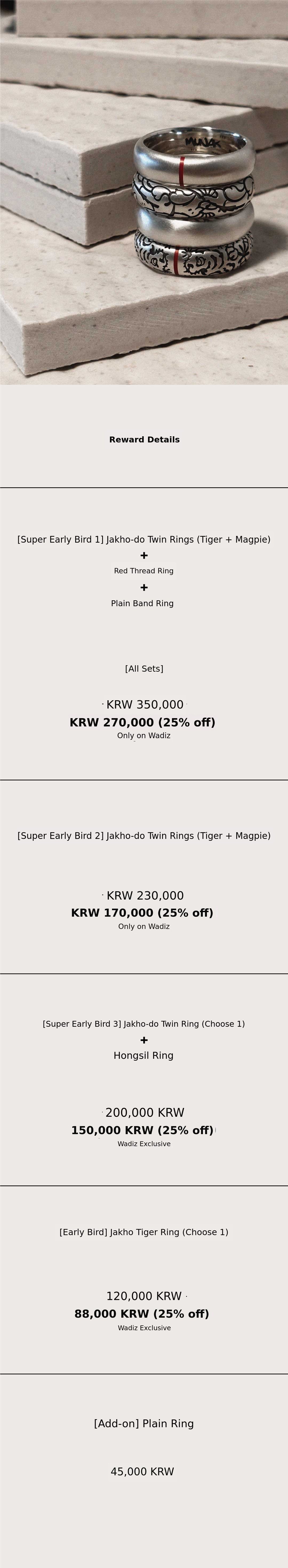 (If you funded the Jakho-do + Hongshil Ring set, please make sure to cancel and re-fund! There was a pricing error, so we have re-registered the reward with the corrected price. Please take note!)