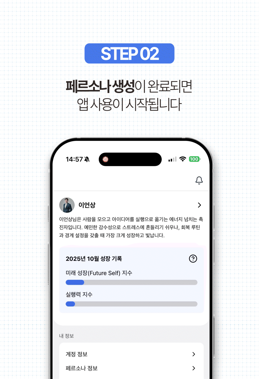 - A service created with early users: Wadiz backers can participate in the co-development of the service. Through beta testing, your feedback on AI coaching questions and MPF/MPTI-based persona modeling will be reflected in actual product improvements.