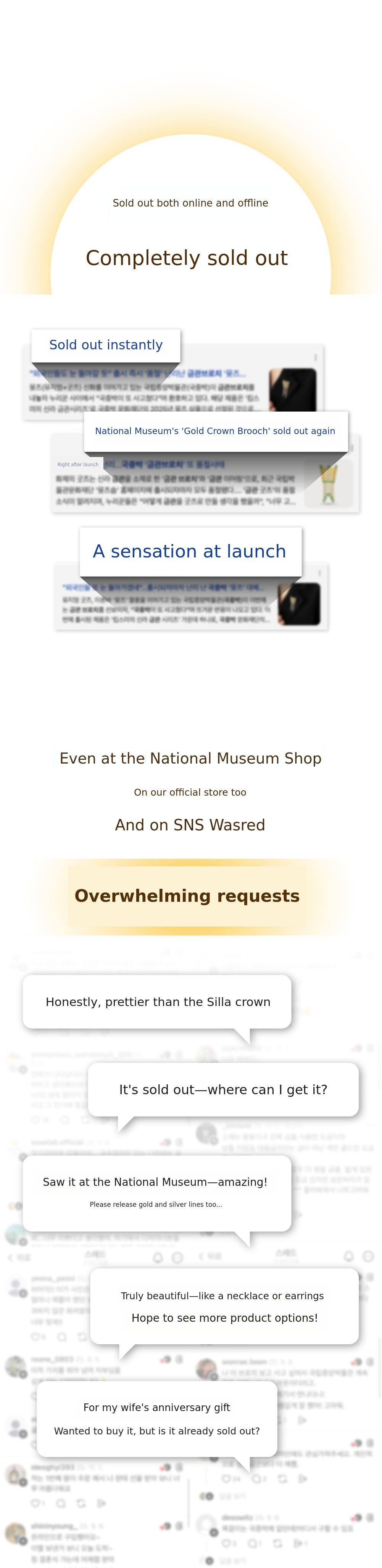 Thanks to the great interest and support for the Silla Gold Crown brooch released as an official product of the National Museum of Korea, many customers have requested the production of jewelry lines such as necklaces and earrings in silver and gold materials.