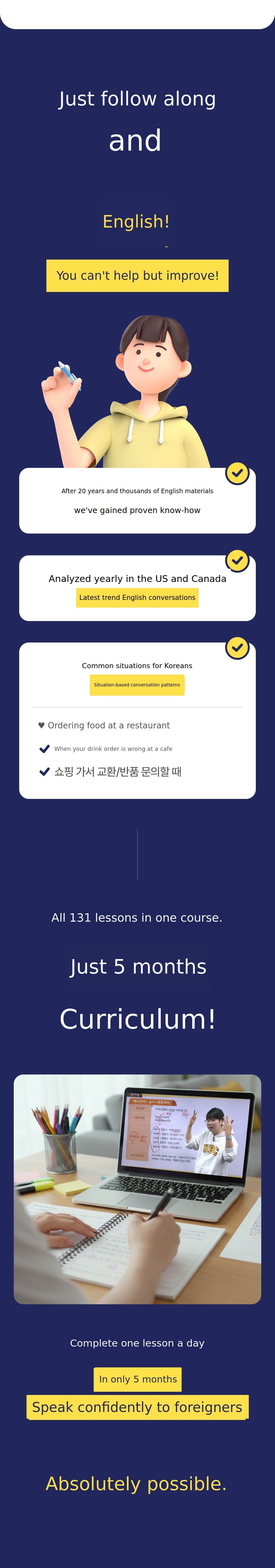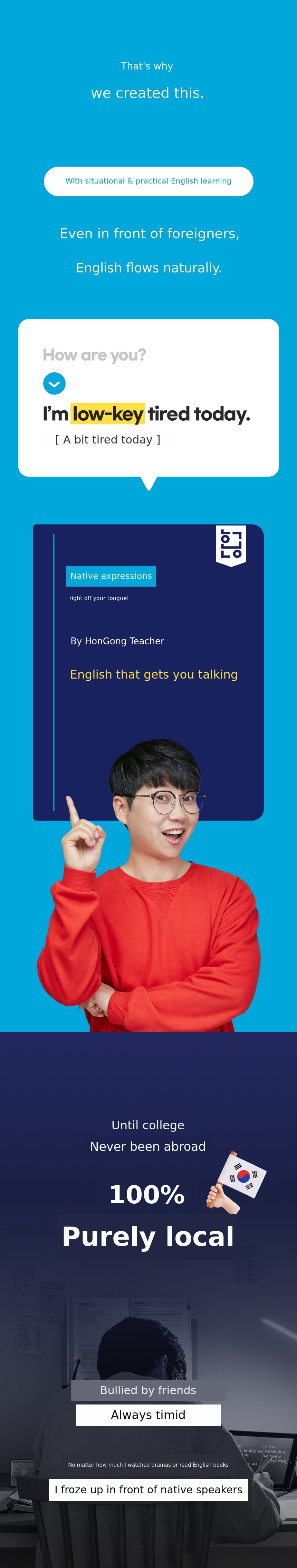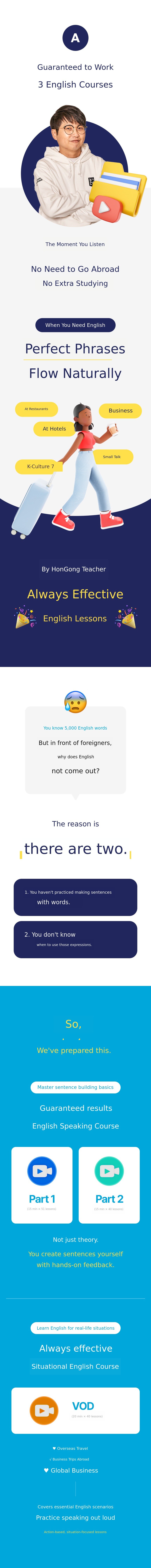 Everyone, the number one language that can bring great change to your life is English. If smart Koreans add English skills, they can do anything. Because I know so well the hardships of being a beginner, I was able to become an English instructor who truly understands your perspective. I will do my best, with the most efficient methods, to help you study English on your own and improve your skills.
