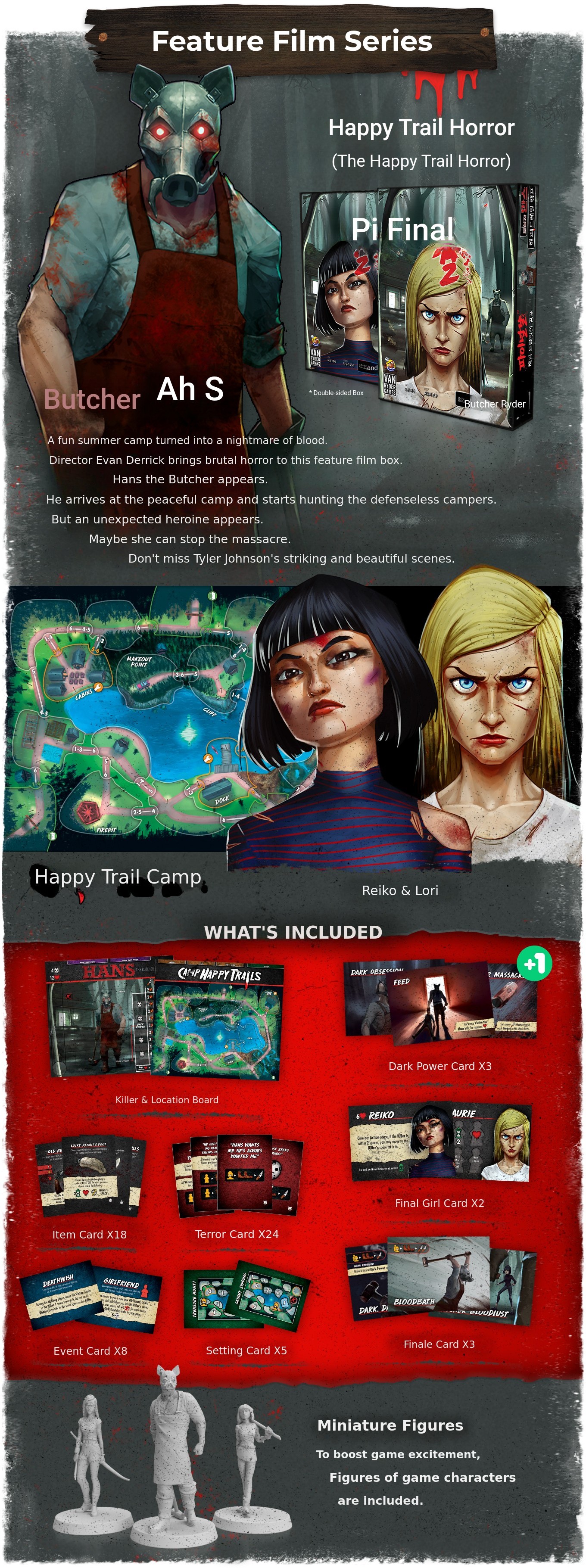 On the other hand, each Feature Film includes its own killer, location board, and Final Girl character, providing the episode (scenario) for a 'horror movie'.