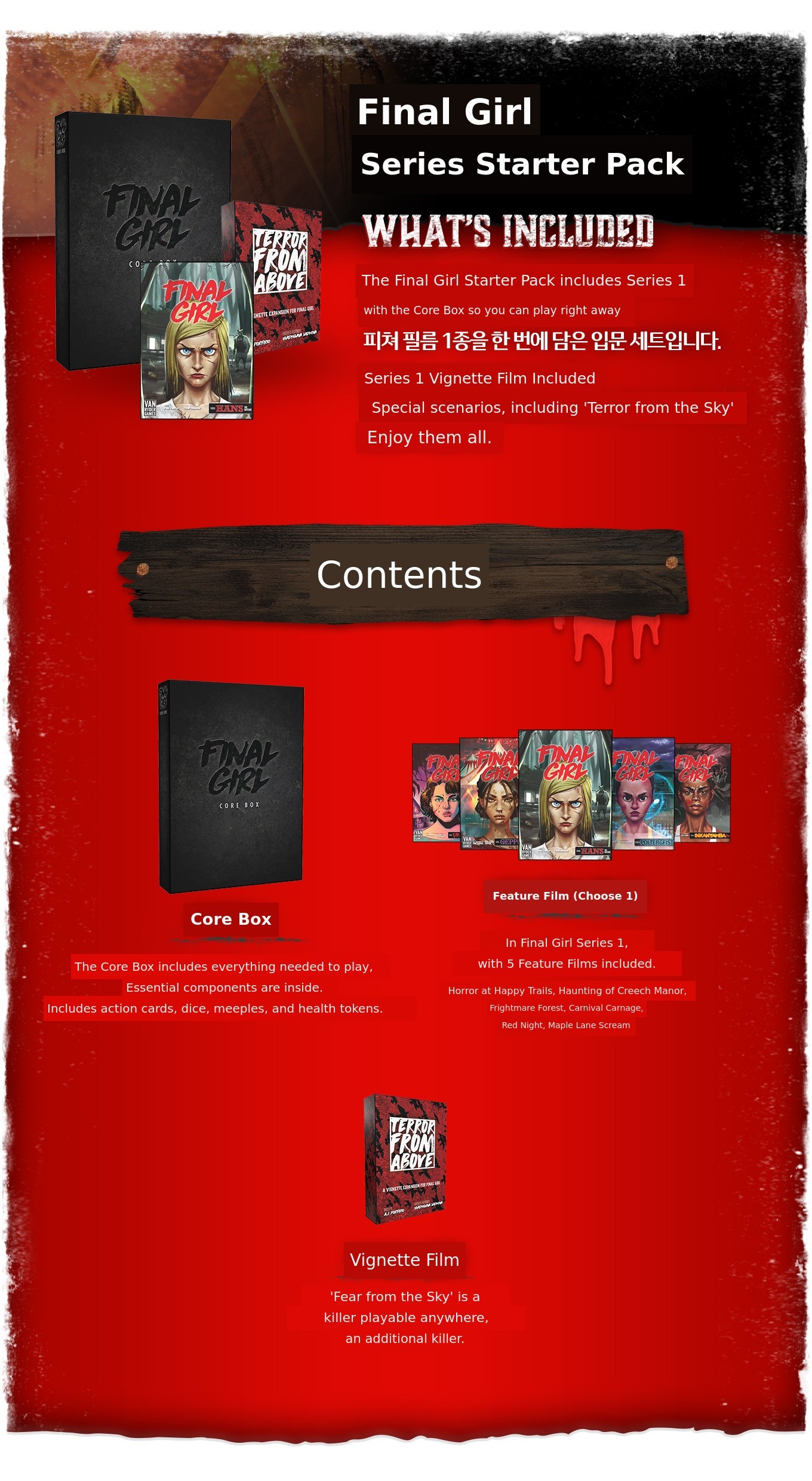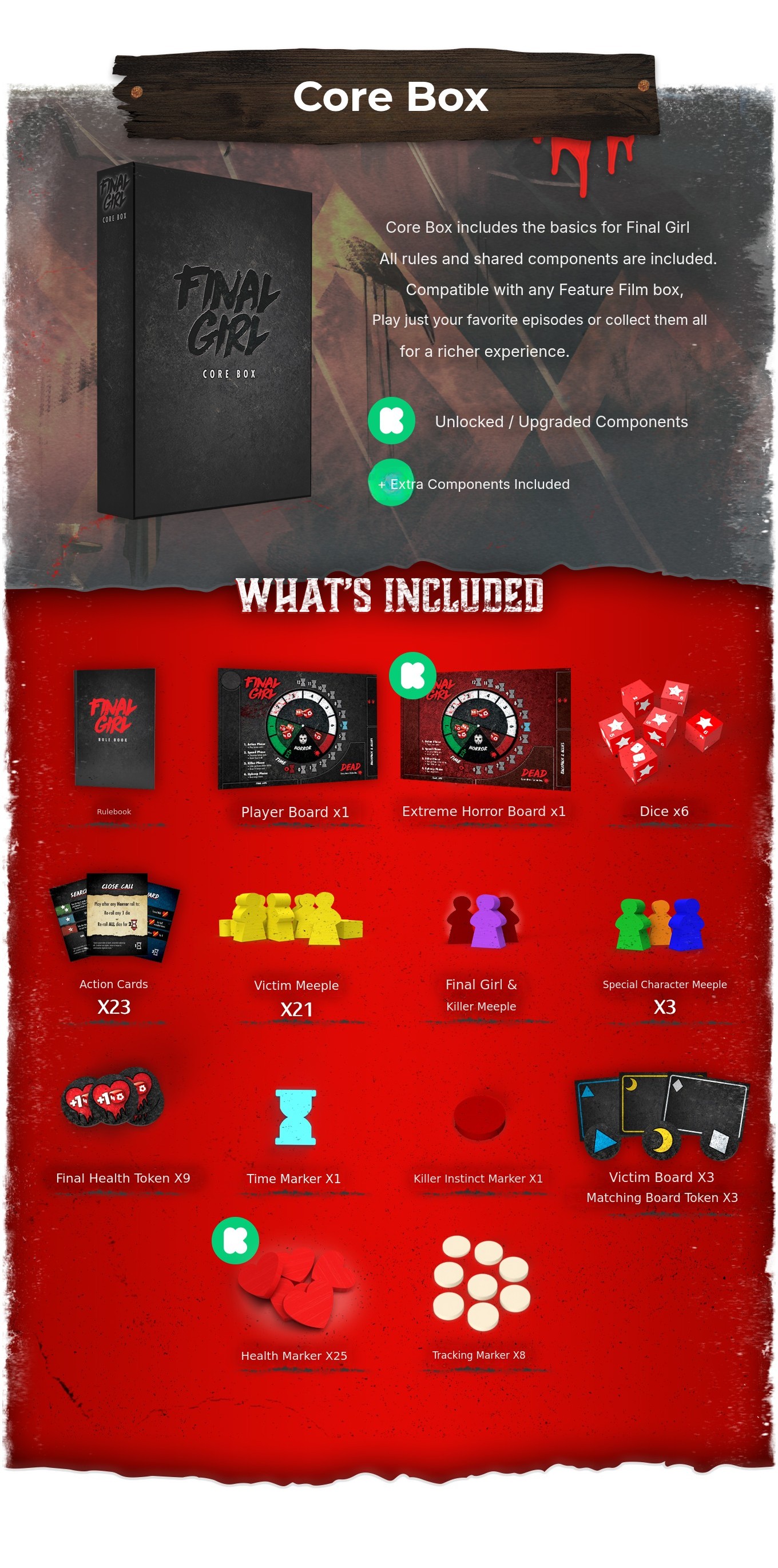 The Final Girl board game requiresCore Box + 1 Feature Film to be played together.