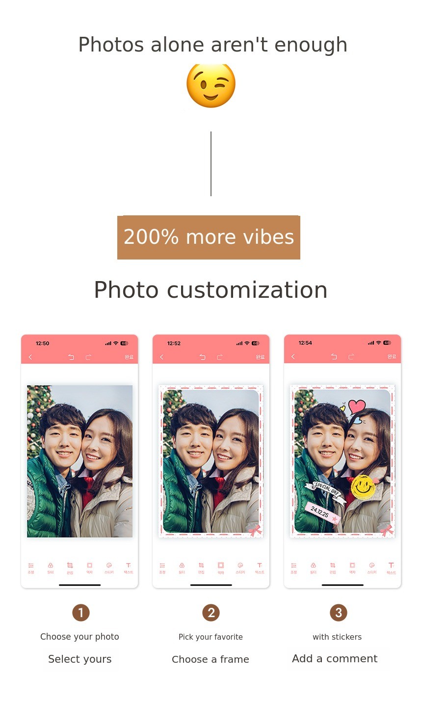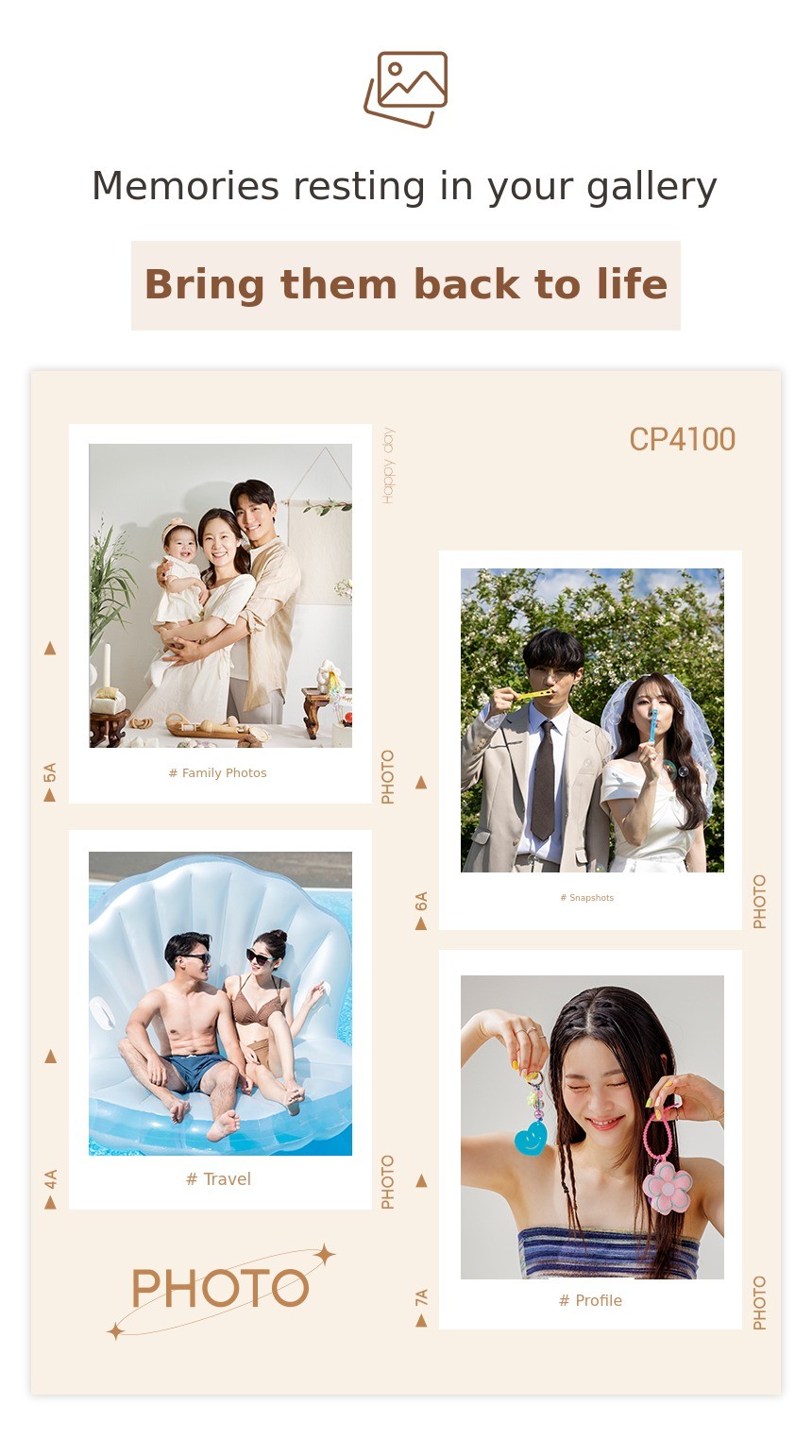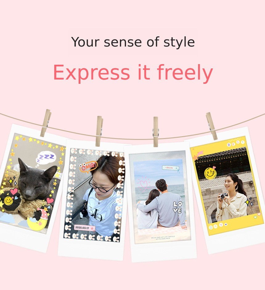 You can instantly print photos anytime, anywhere, and create photo books, photo walls, or your own interior decor.Your moments,Not just time passing by, If you want to leave them as a 'record.'