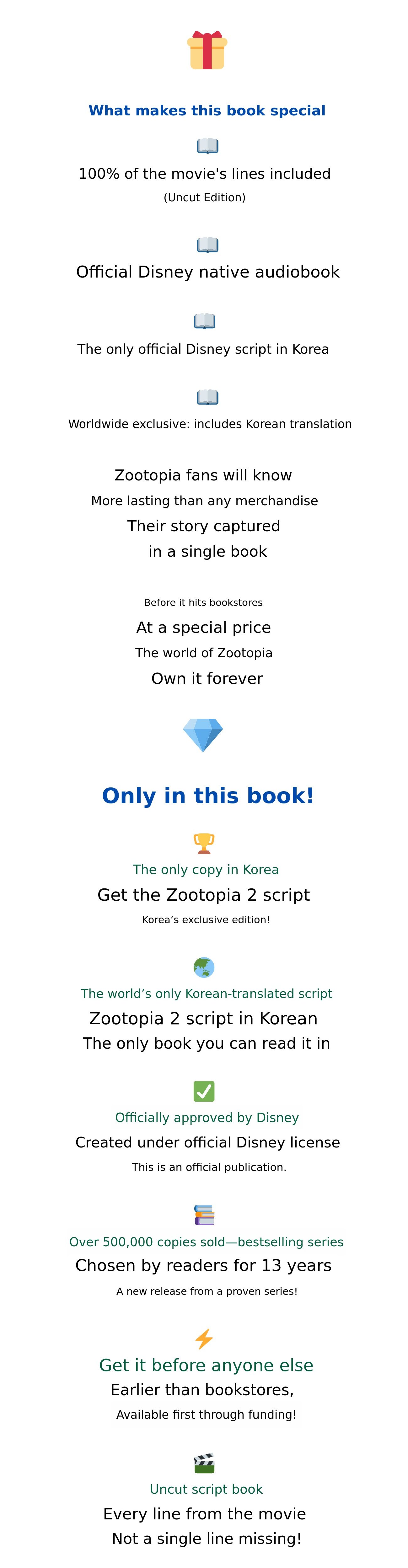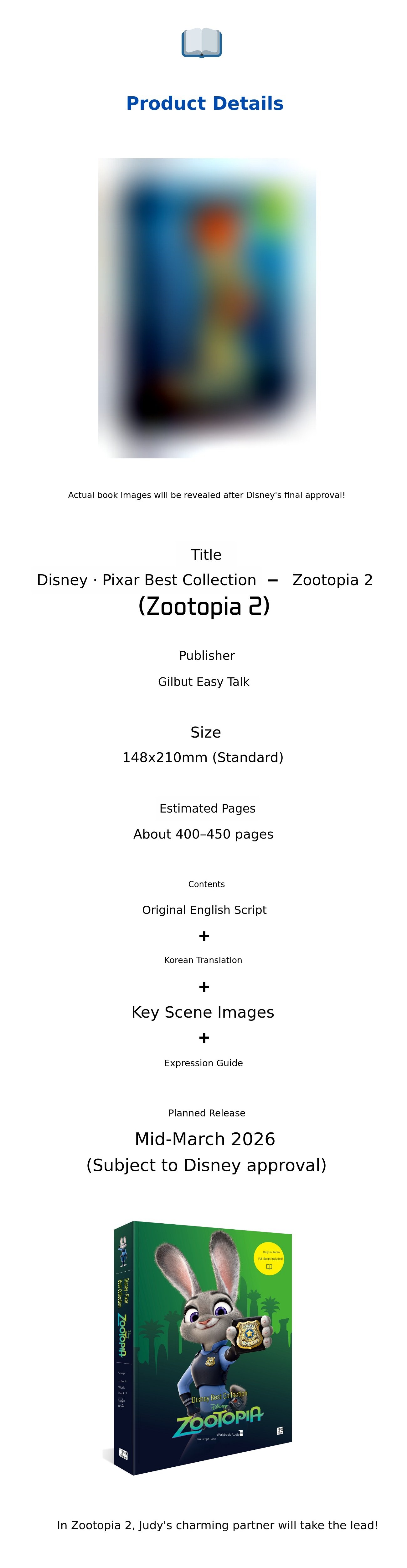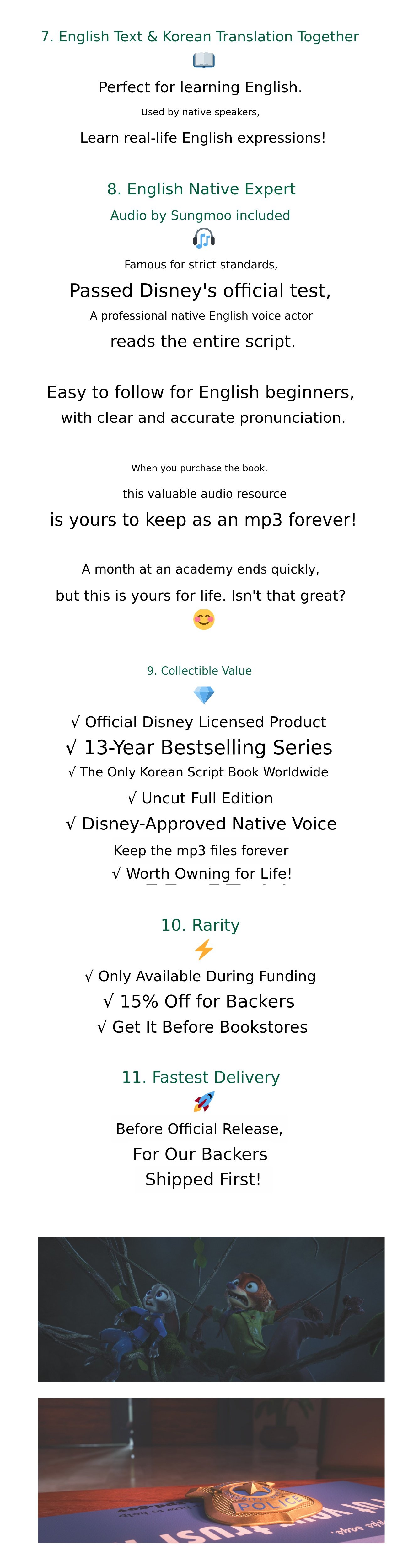 1. 📚 Official Zootopia 2 Scriptbook - Complete movie dialogues included, sole official publication in Korea 2. 🎧 Disney Certified Native Audiobook - Professional voice actor mp3 files for immersive experience 3. 💸 15% Discount and Fast Delivery - Limited-time funding offer, earlier than bookstore release