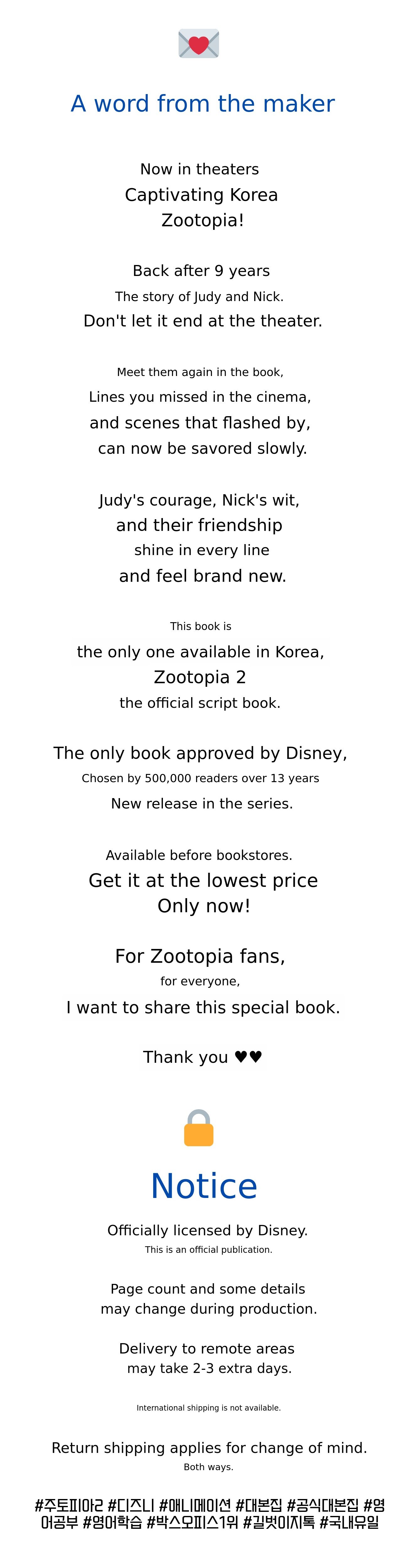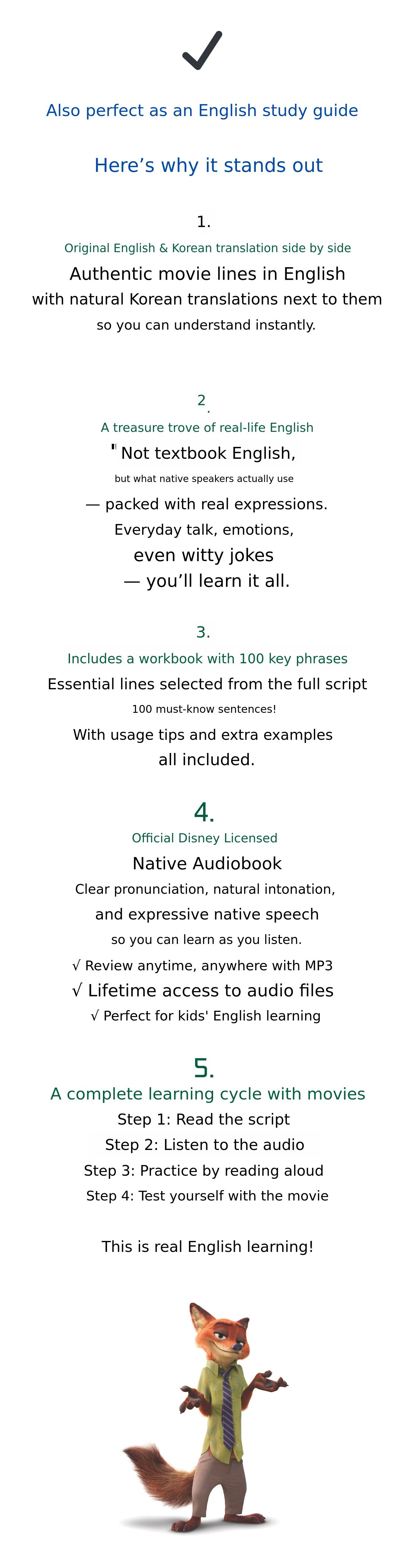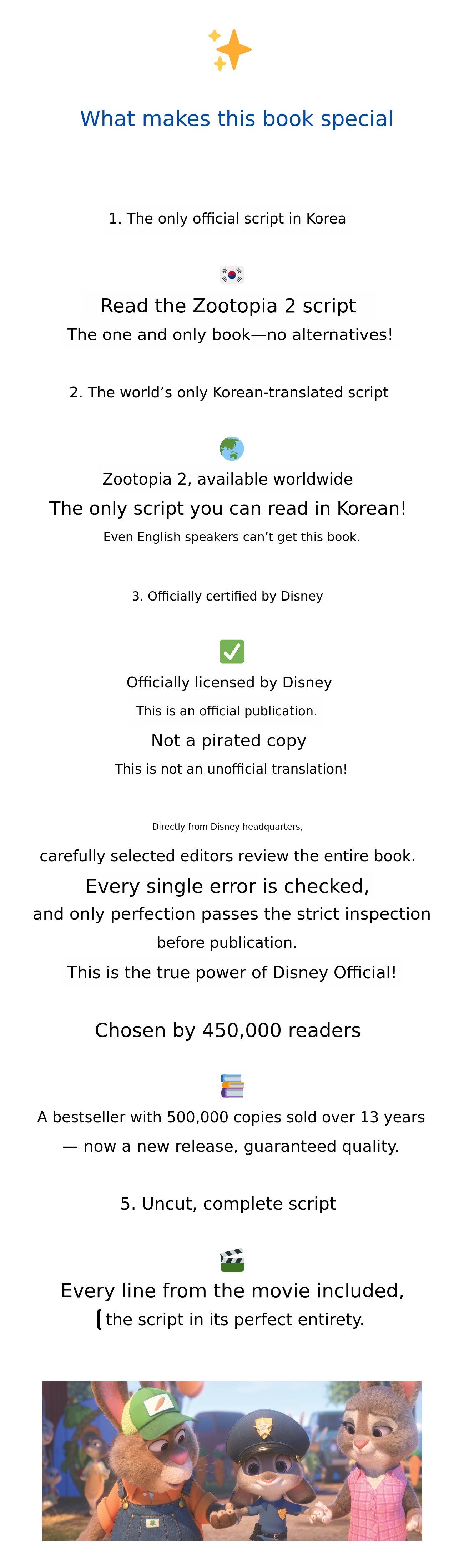 1. 📚 Official Zootopia 2 Scriptbook - Complete movie dialogues included, sole official publication in Korea 2. 🎧 Disney Certified Native Audiobook - Professional voice actor mp3 files for immersive experience 3. 💸 15% Discount and Fast Delivery - Limited-time funding offer, earlier than bookstore release