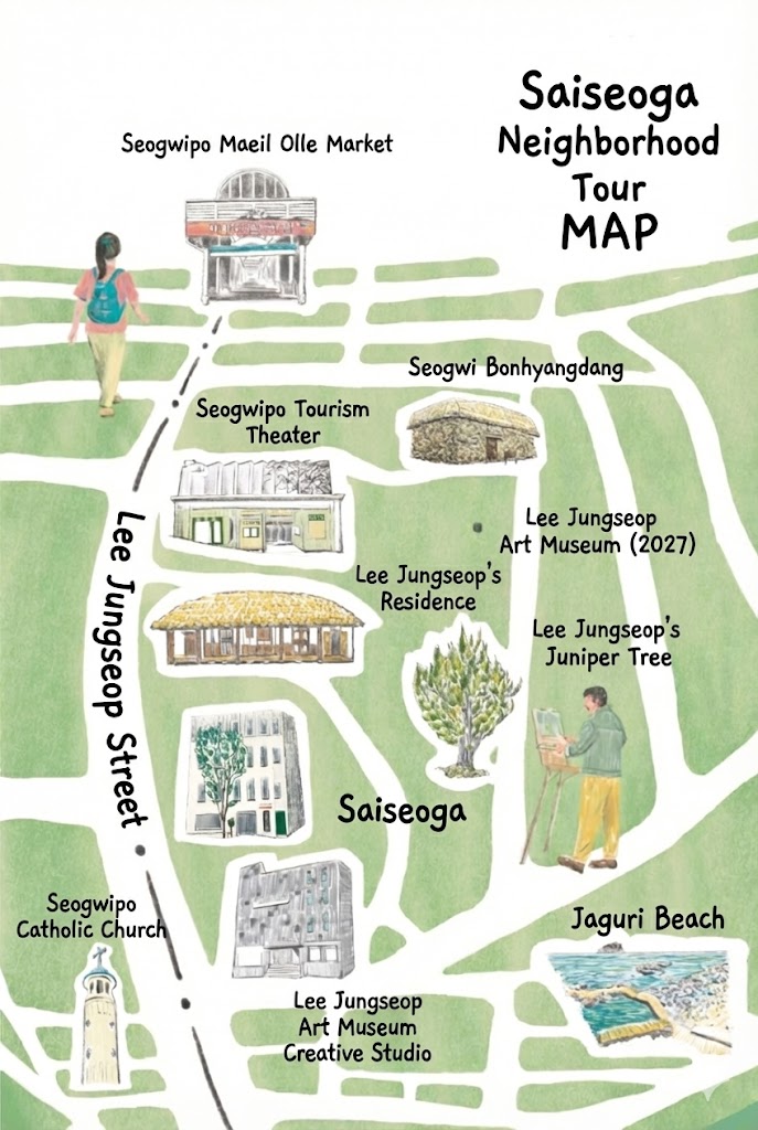 Lee Jungseop Street and a neighborhood walking tour map within walking distance of Saiseoga