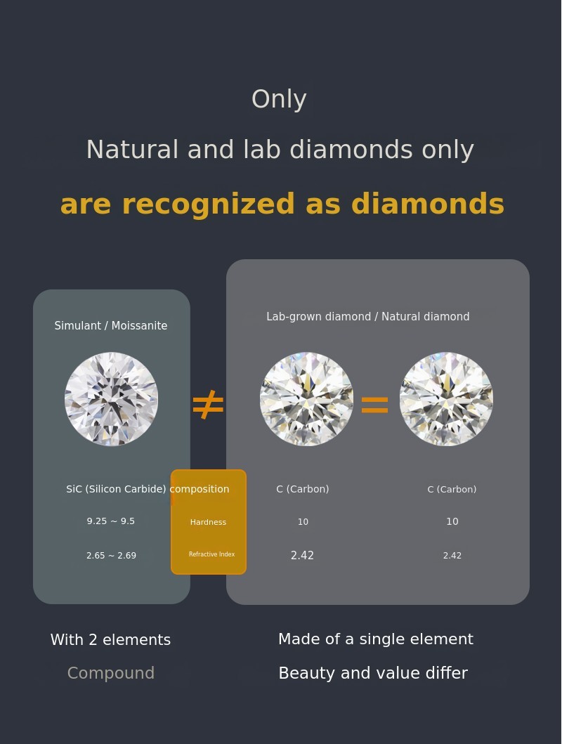 Simulants that only mimic the shape and brilliance/MoissaniteAre fundamentally different from the start The most reputable worldwide