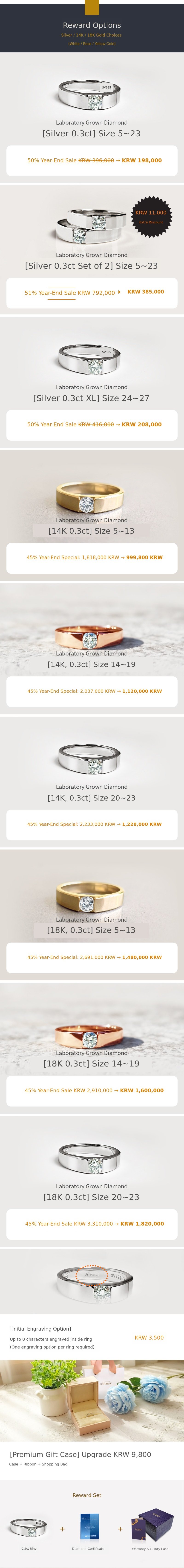 14K/18K White/Rose/Yellow Gold Additional